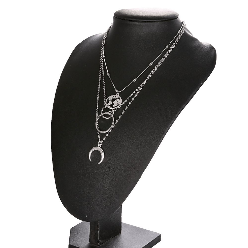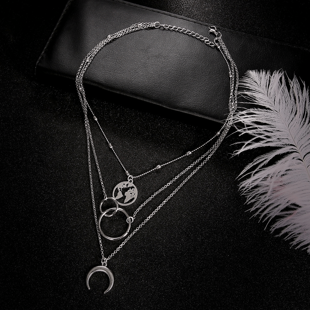 Fashion Multi-layer Moon Map Necklace Female Personality Bohemian Multi-layer Necklace Female