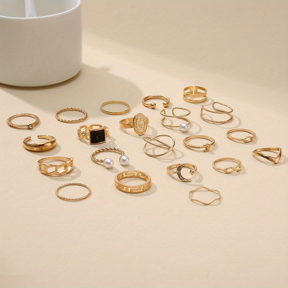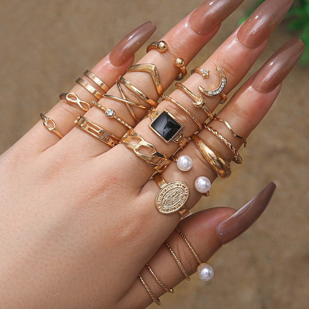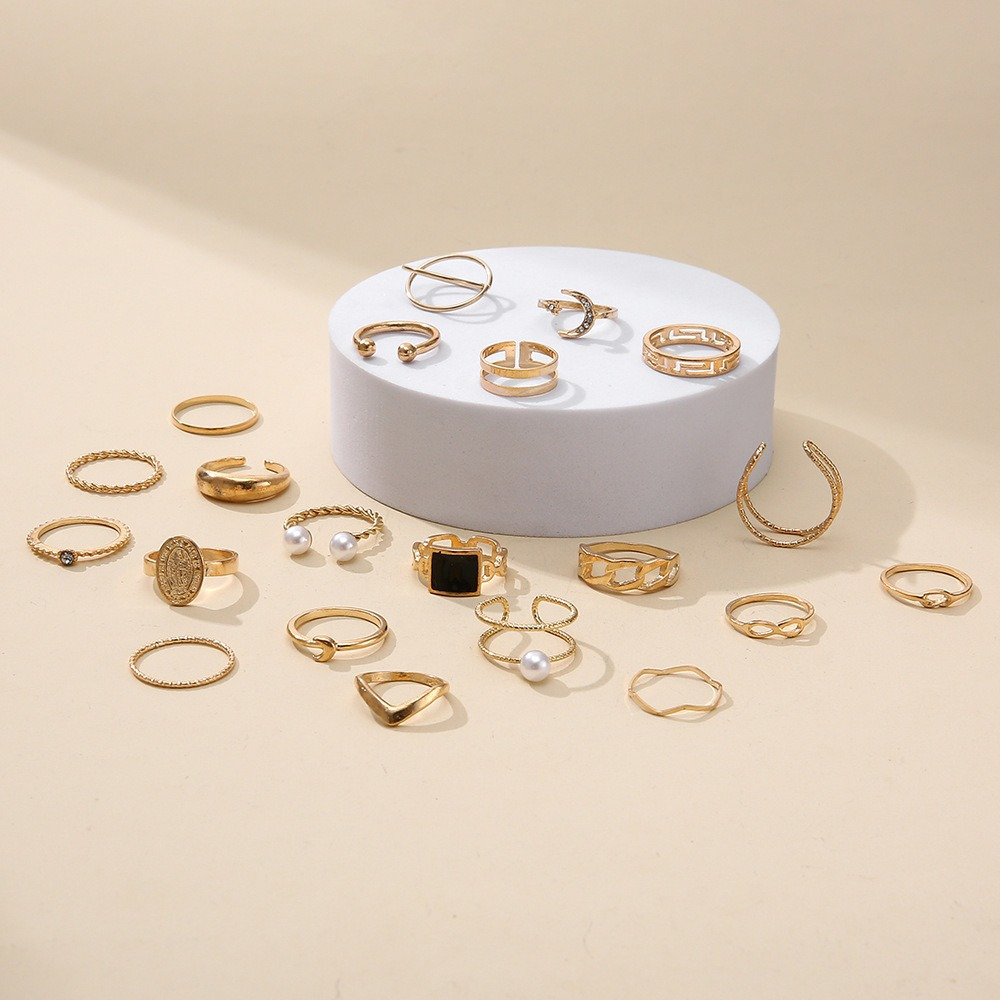 Fashion Open Star Moon Ring Personality Drip Oil Twist Combination 21-piece Set Female