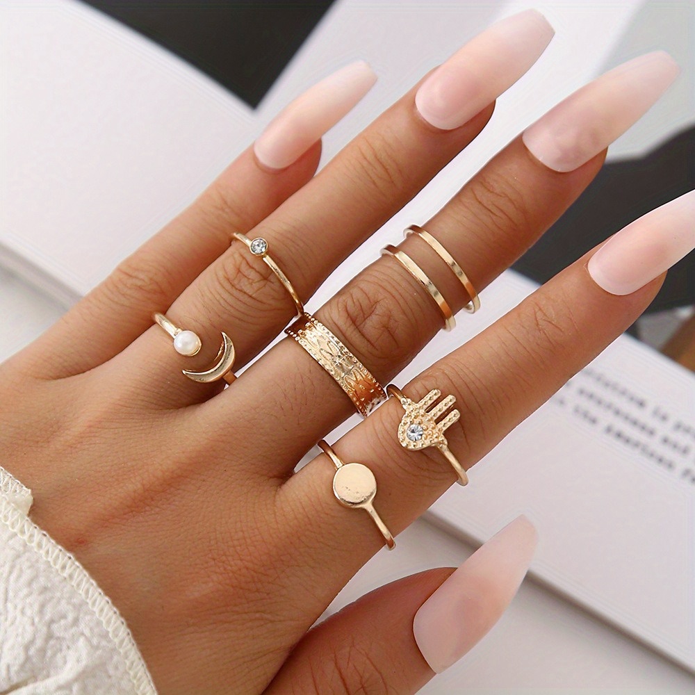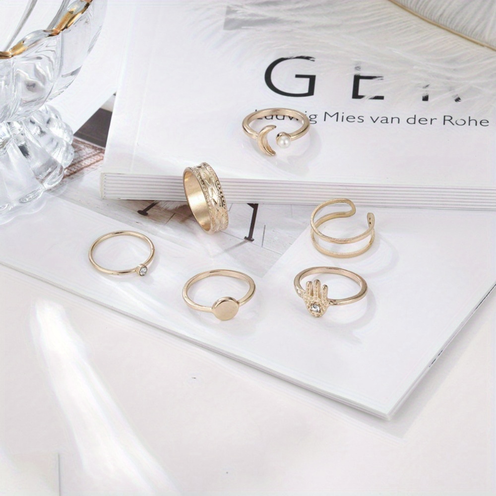 Fashion Palm Diamond Pearl Moon Dot Opening Combination 6-piece Set Women