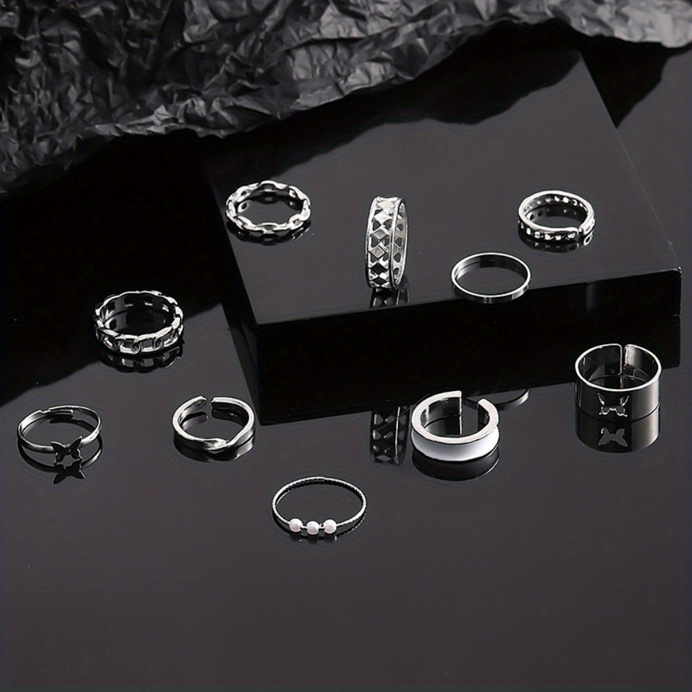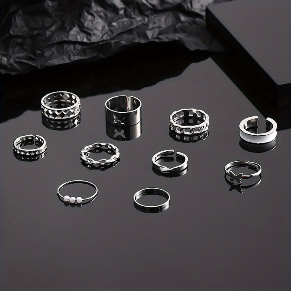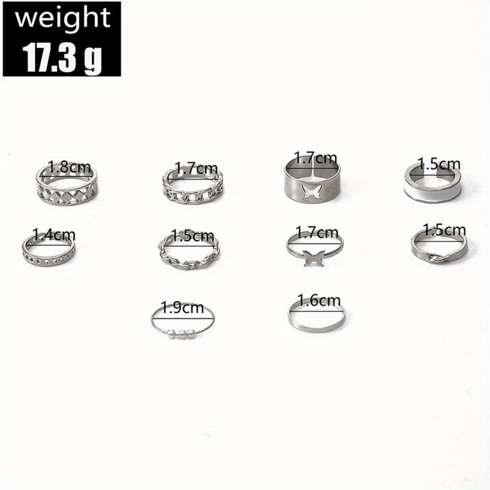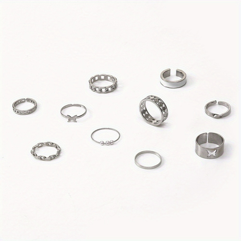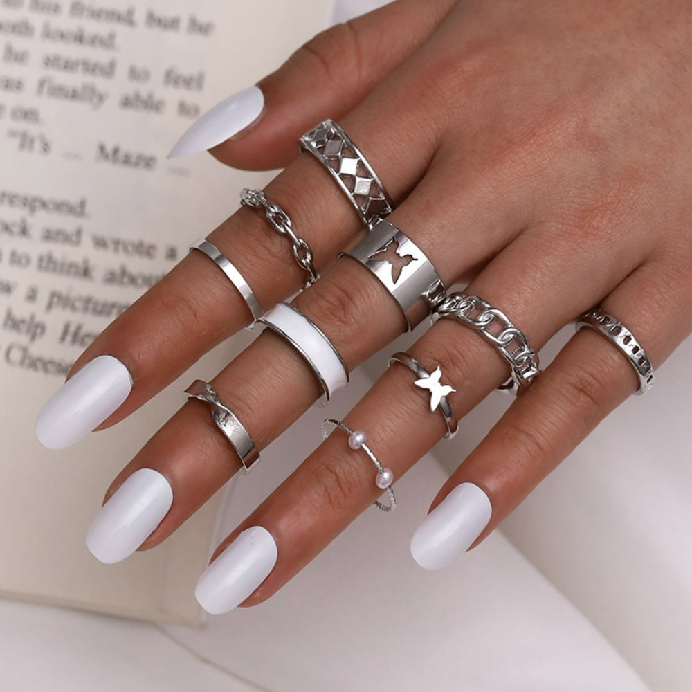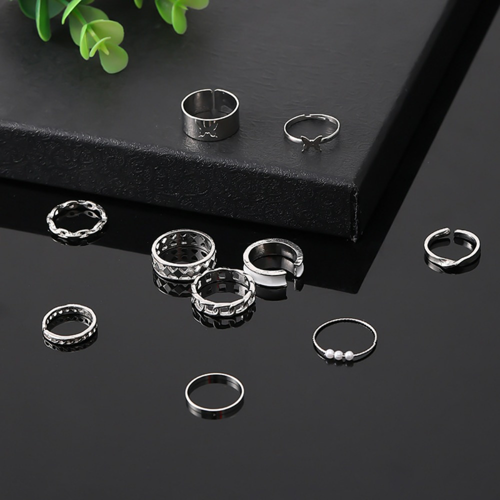 Fashion Pearl Opening Hollow Butterfly Drip Oil Ten-piece Ring Women