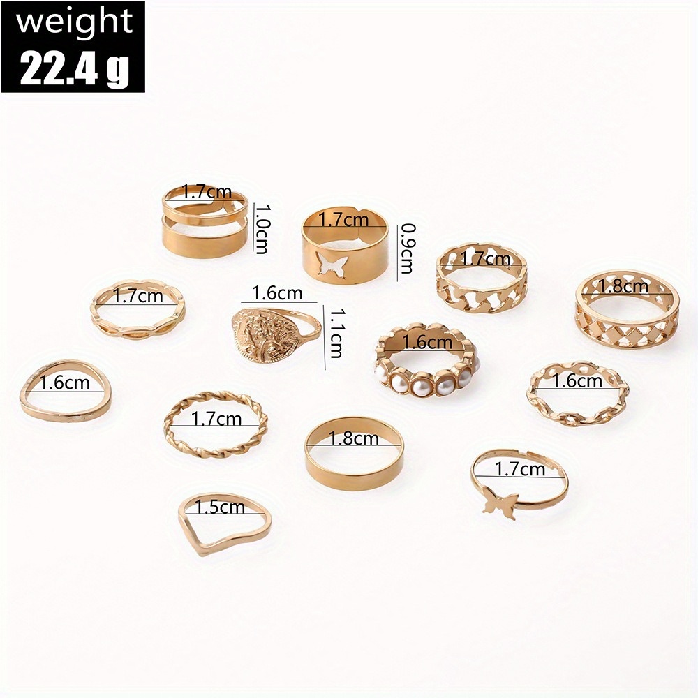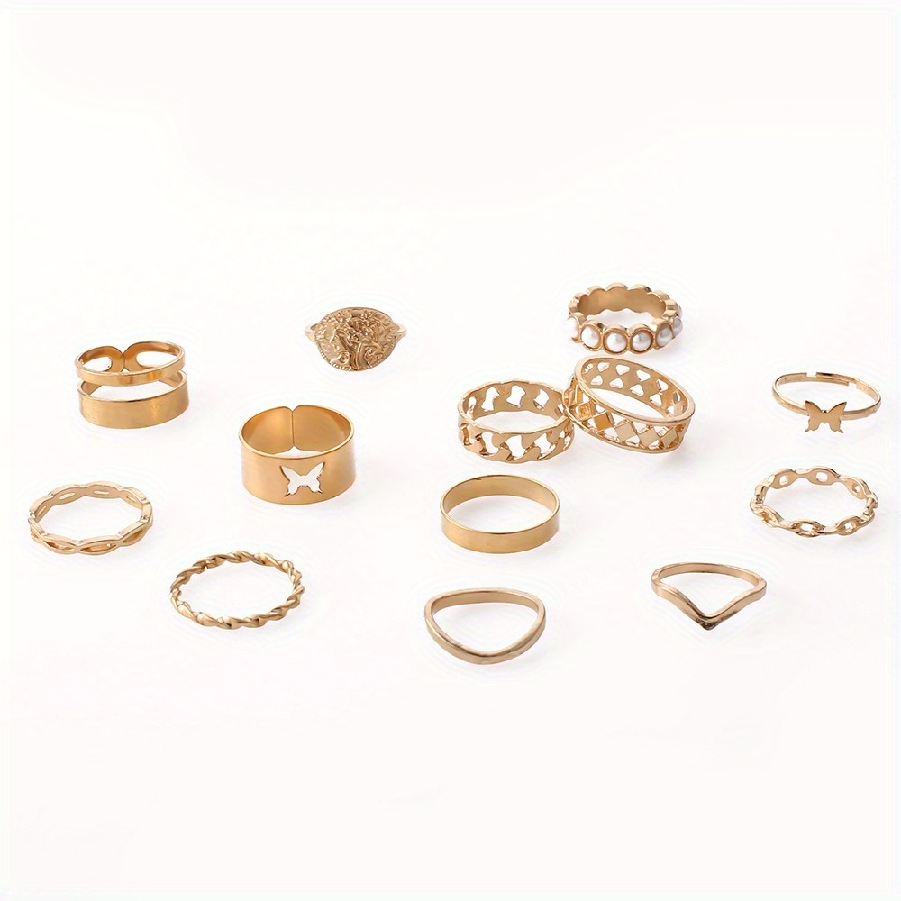 Fashion Pearl Set Personality Hollow Butterfly Opening Double Layer 13-piece Set Combination Ring Women
