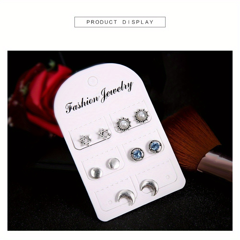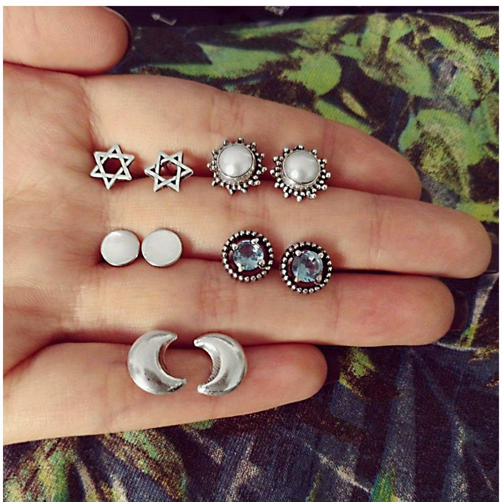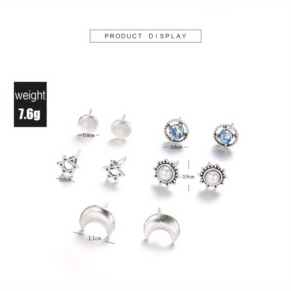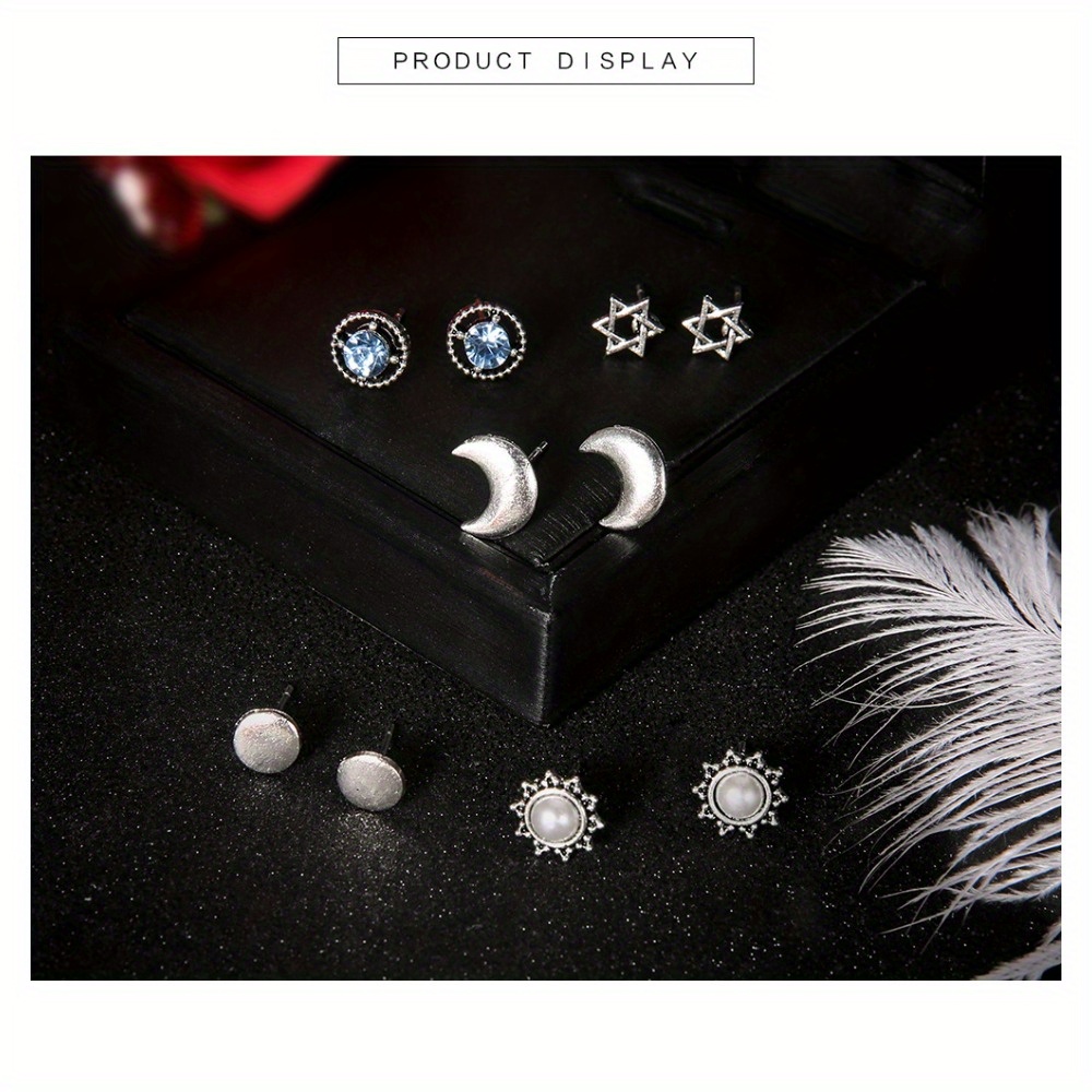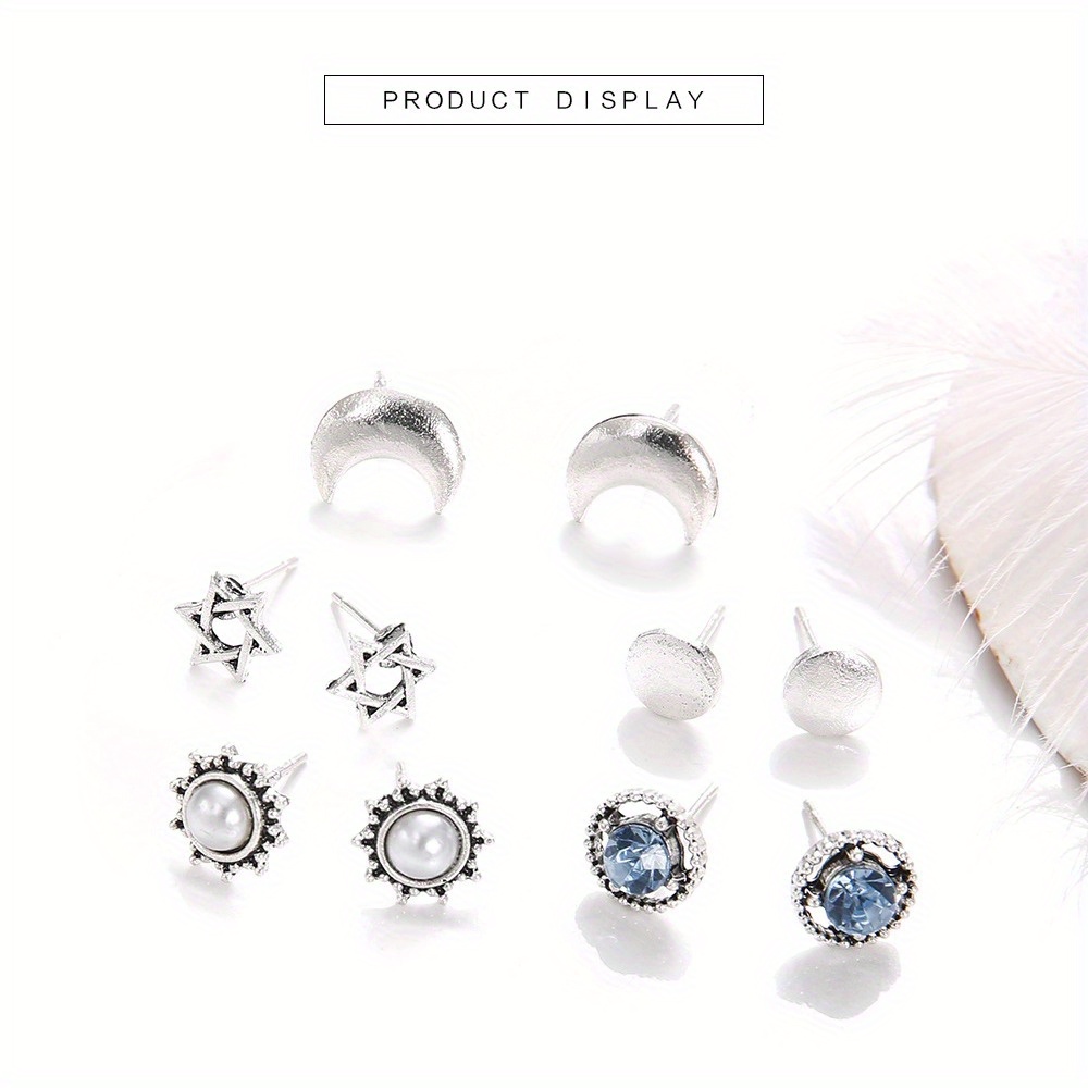 Fashion Personality Diamond-set Crescent Star Corner Star Combination 5 Pairs of Stud Earrings