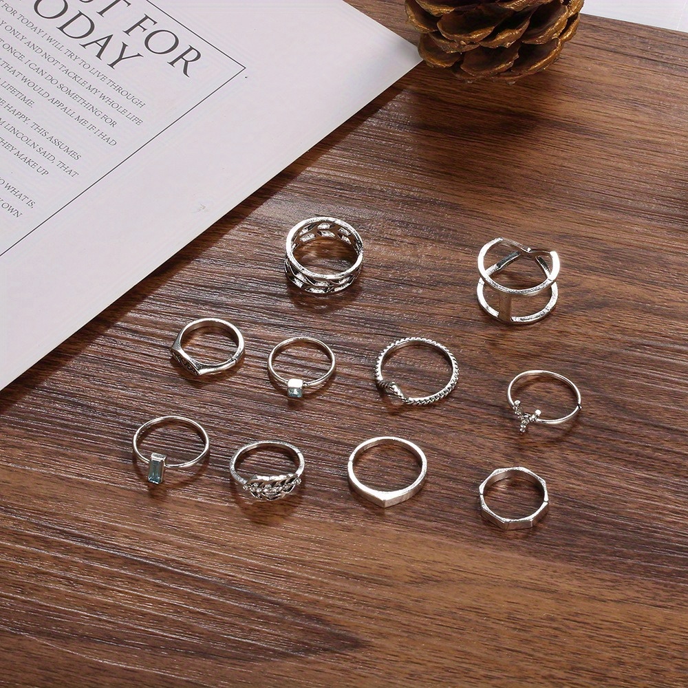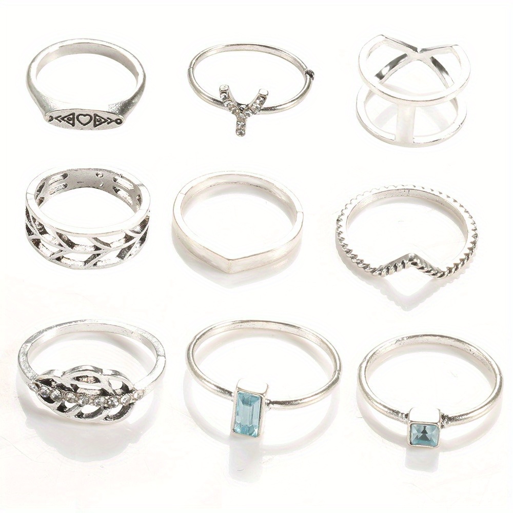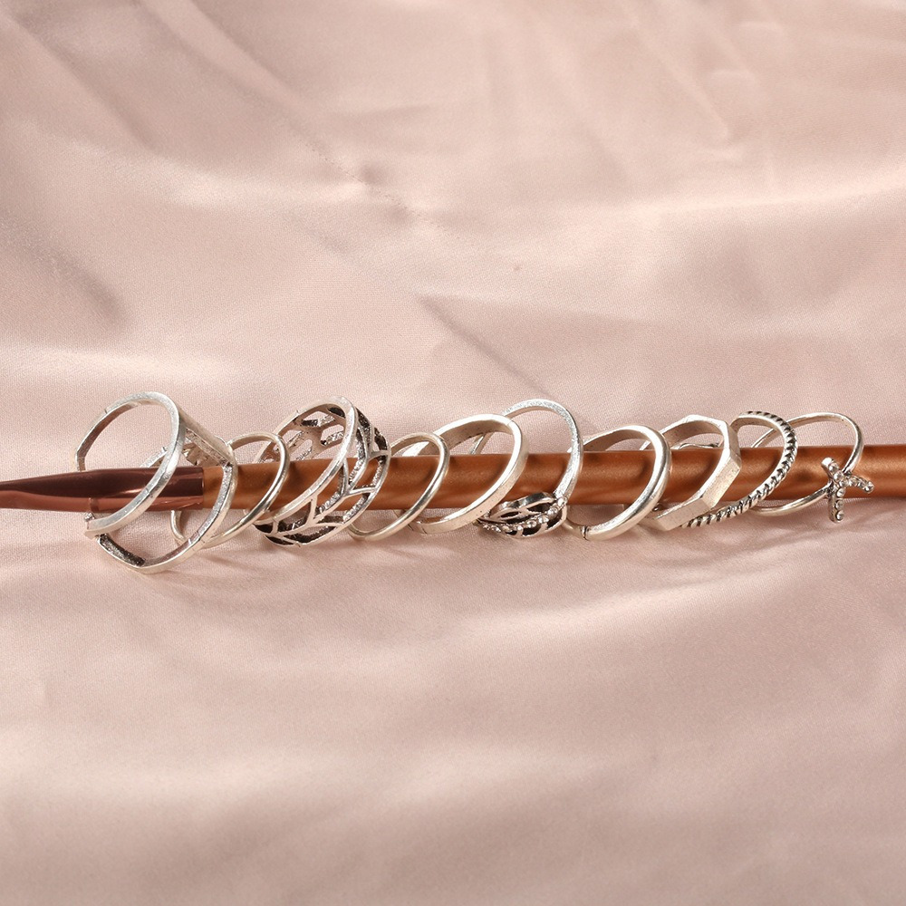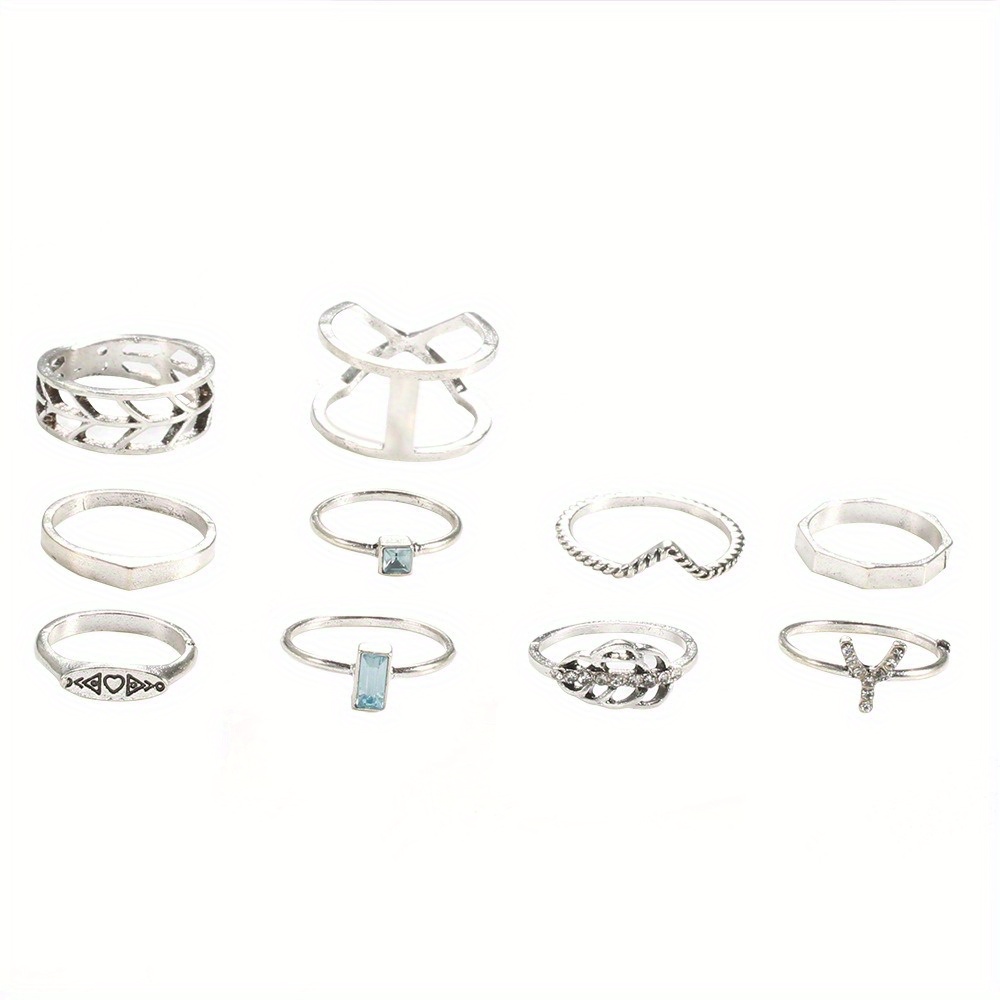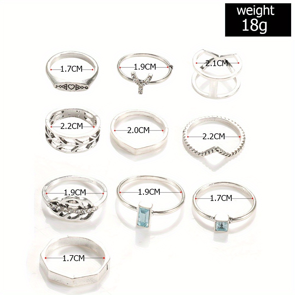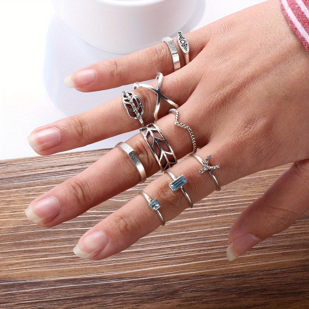 Fashion Personality Leaf Letter Wave Diamond Ring Ten Pieces
