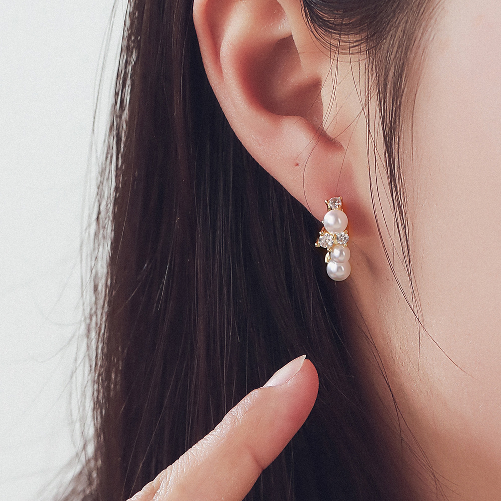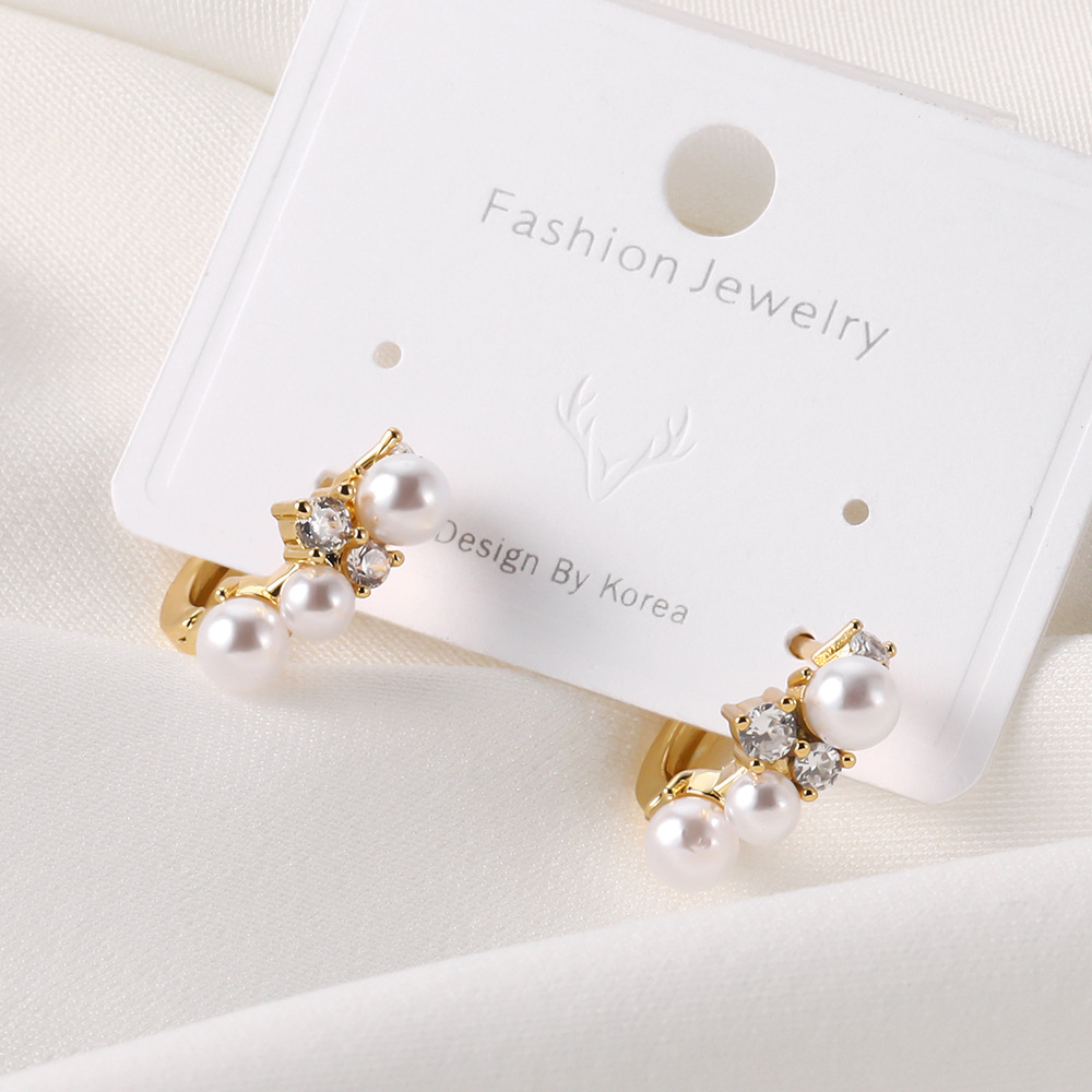 Fashion Personality Pearl Set Zircon Earrings Versatile Stud Earrings