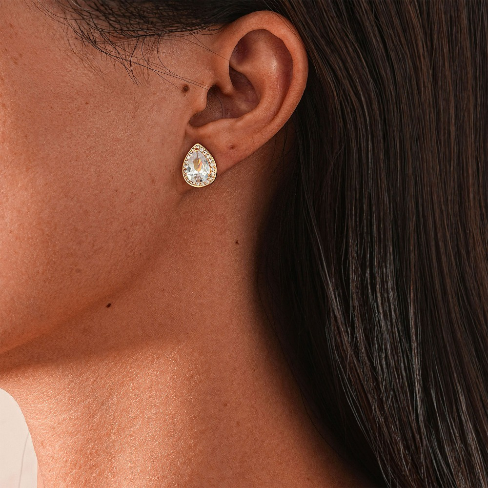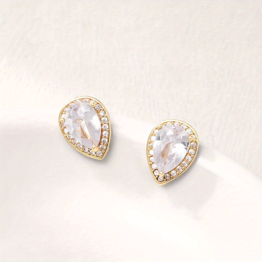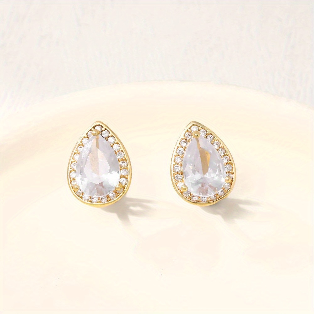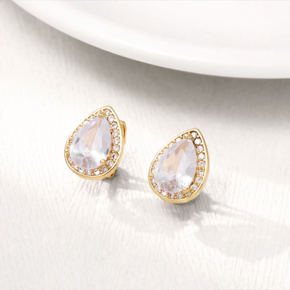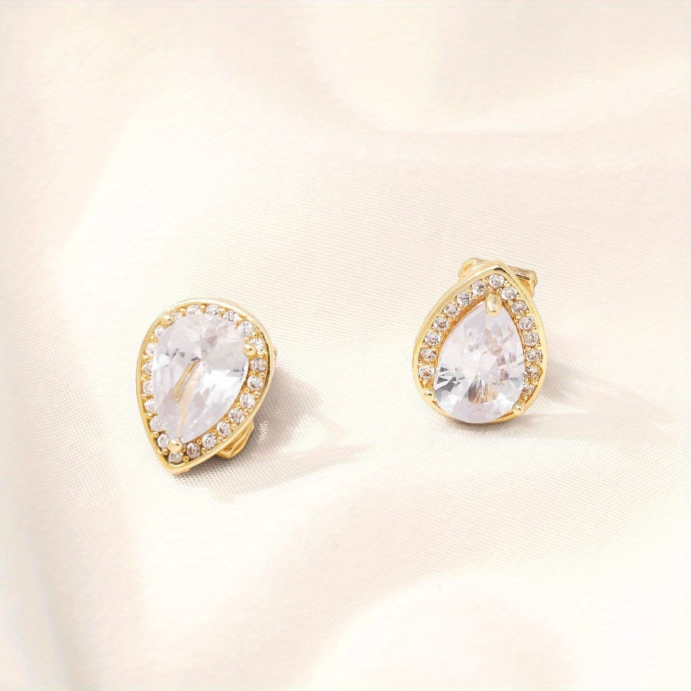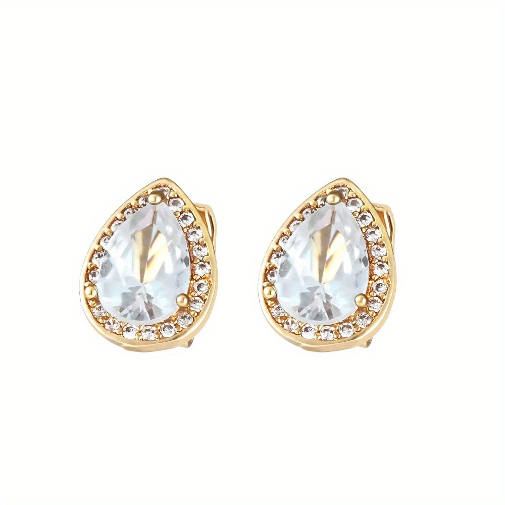 Fashion Personality, Water Drop-shaped Zircon Earless Ear Clips, Copper Earrings.