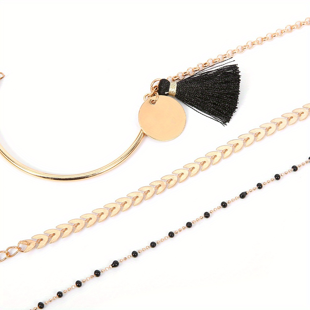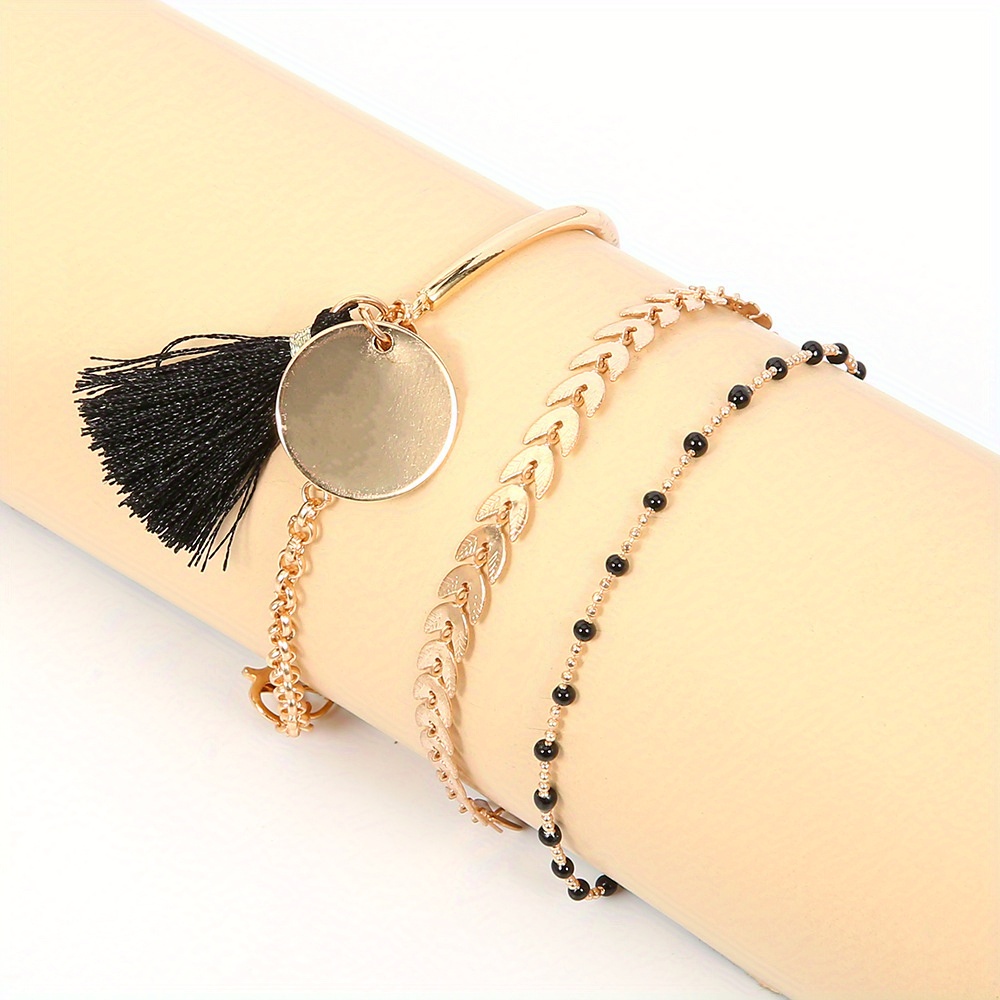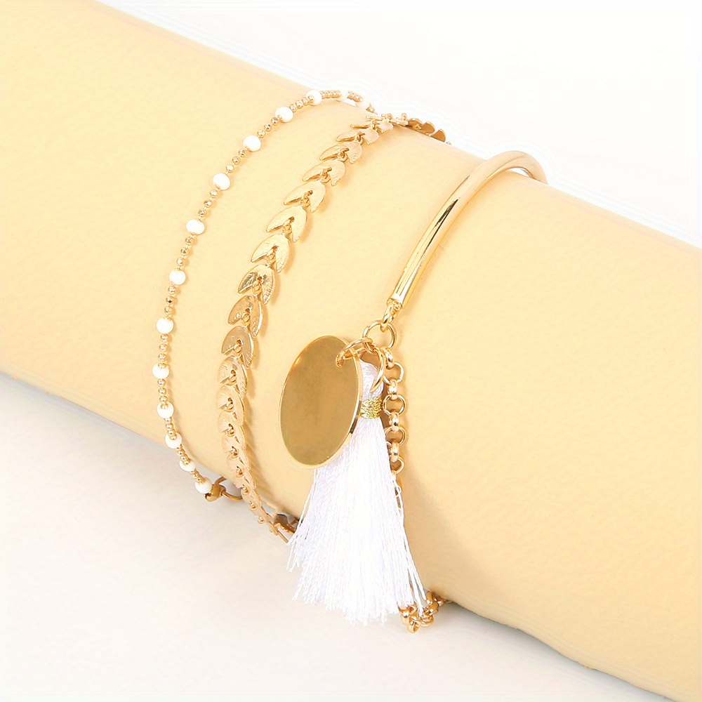 Fashion Round Autumn and Winter Fringed Fish Scale Three-layer Bracelet 3-piece Set Bracelet Jewelry Women