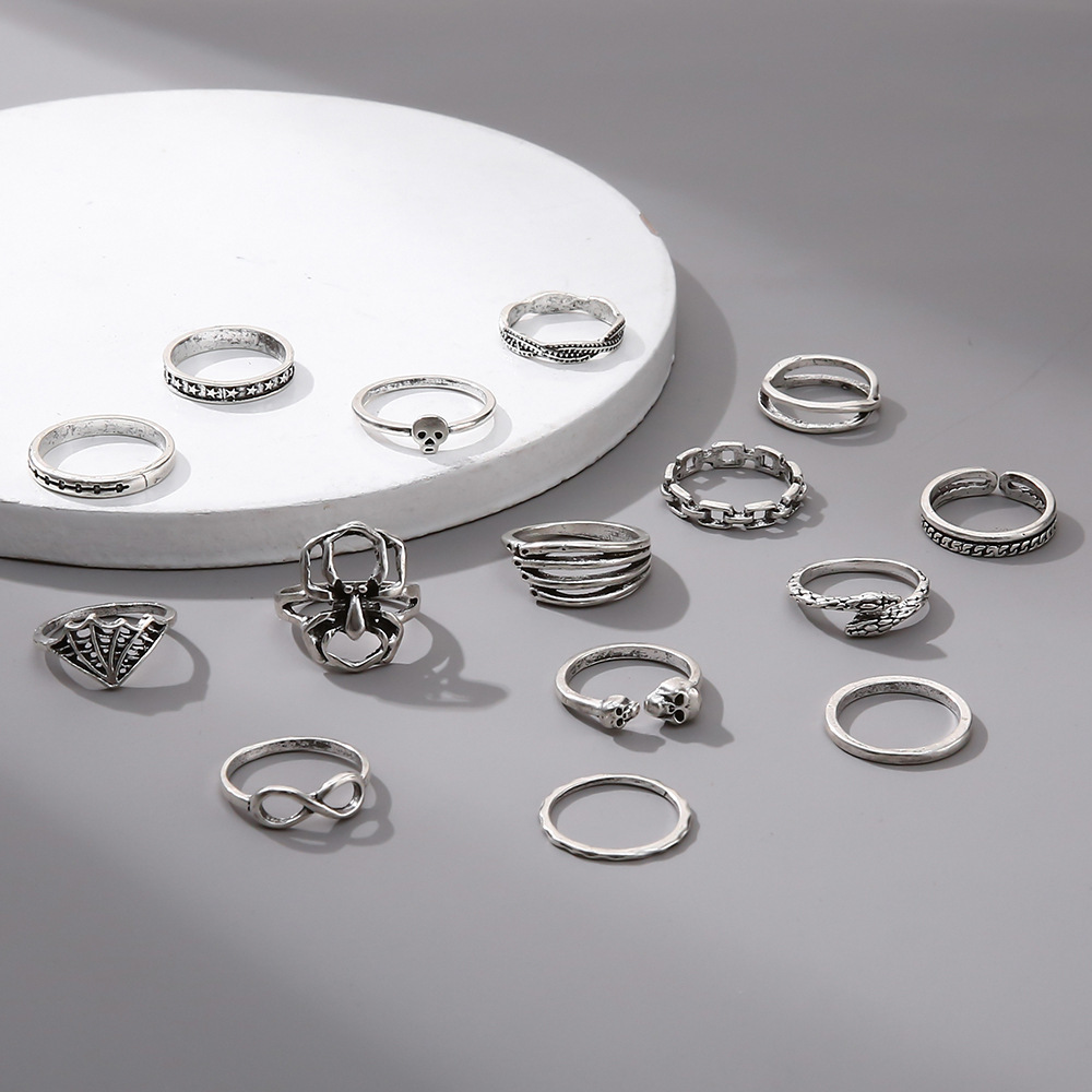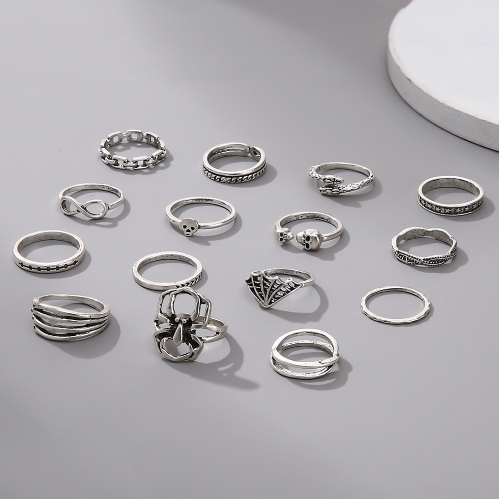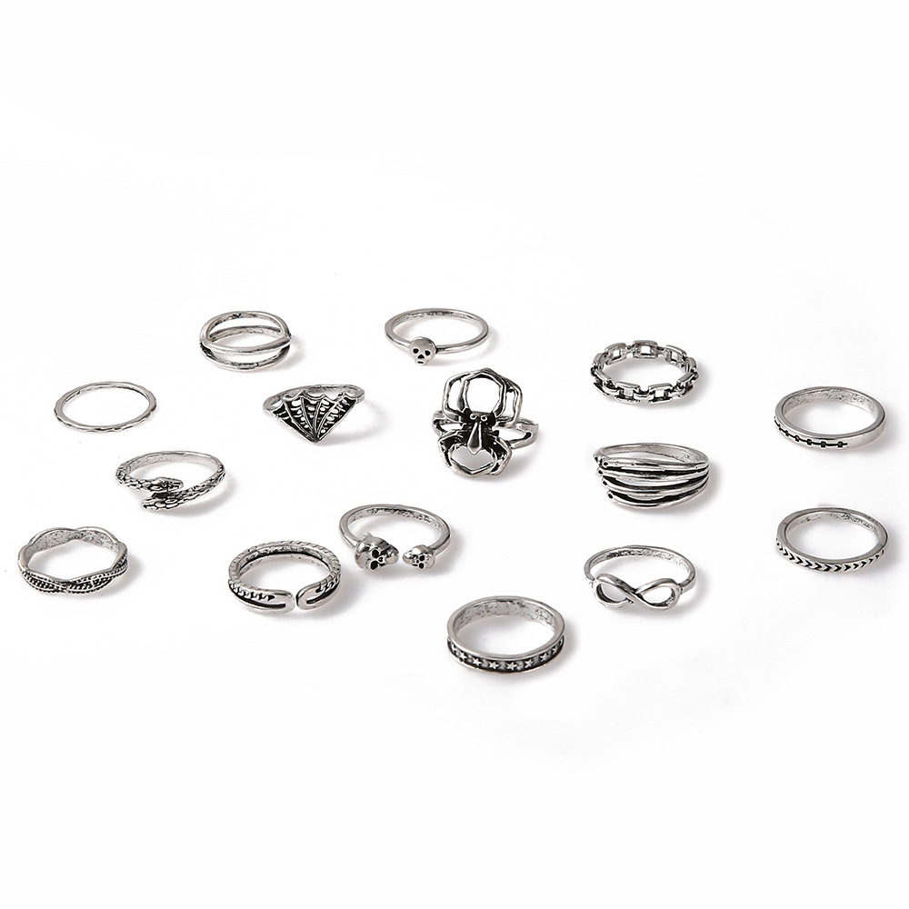 Fashion Spider Snake Palm Twist Cross Irregular Cross Star Joint Ring Set 15-piece Set