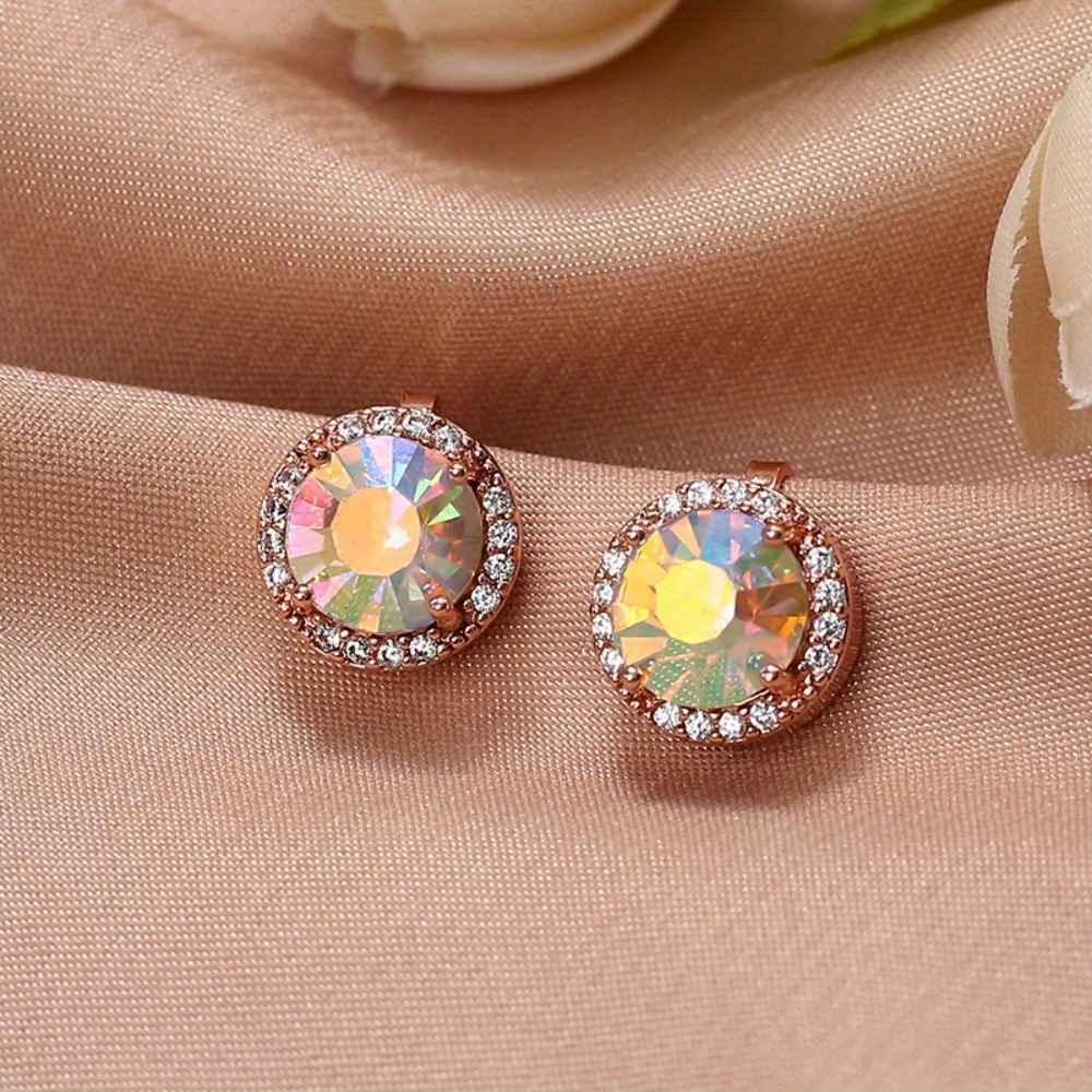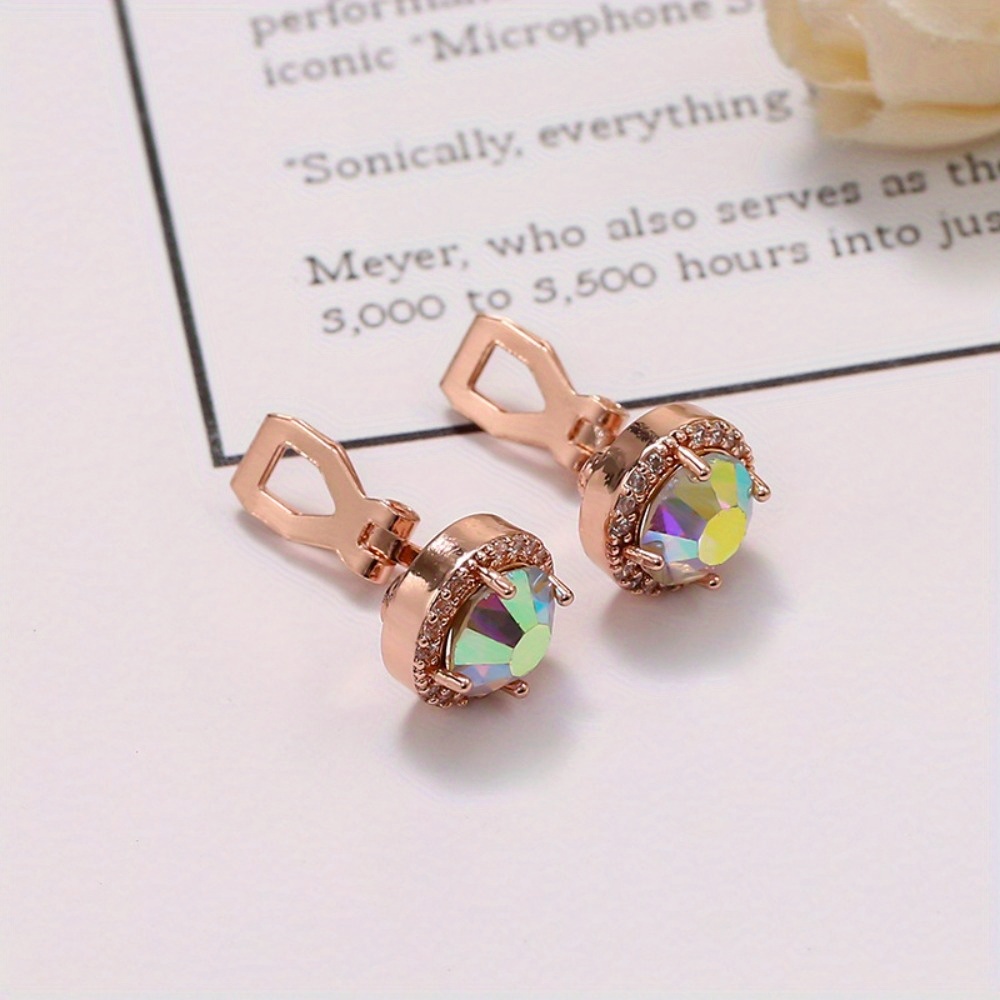 Fashion temperament AB color Opal, slightly inlaid with diamond claws, diamond ear clips, earrings for women