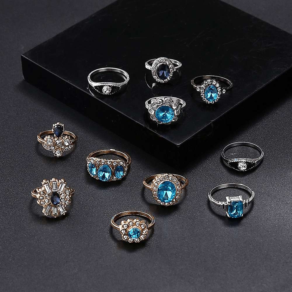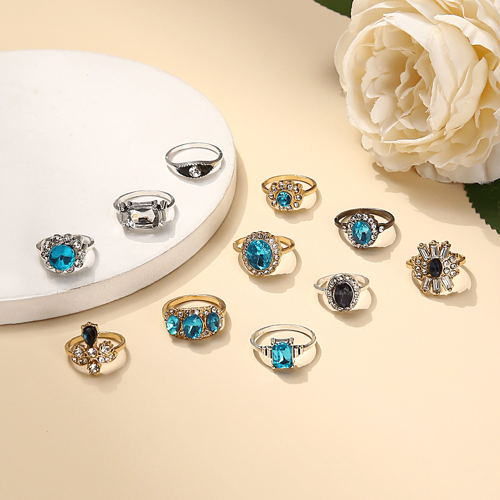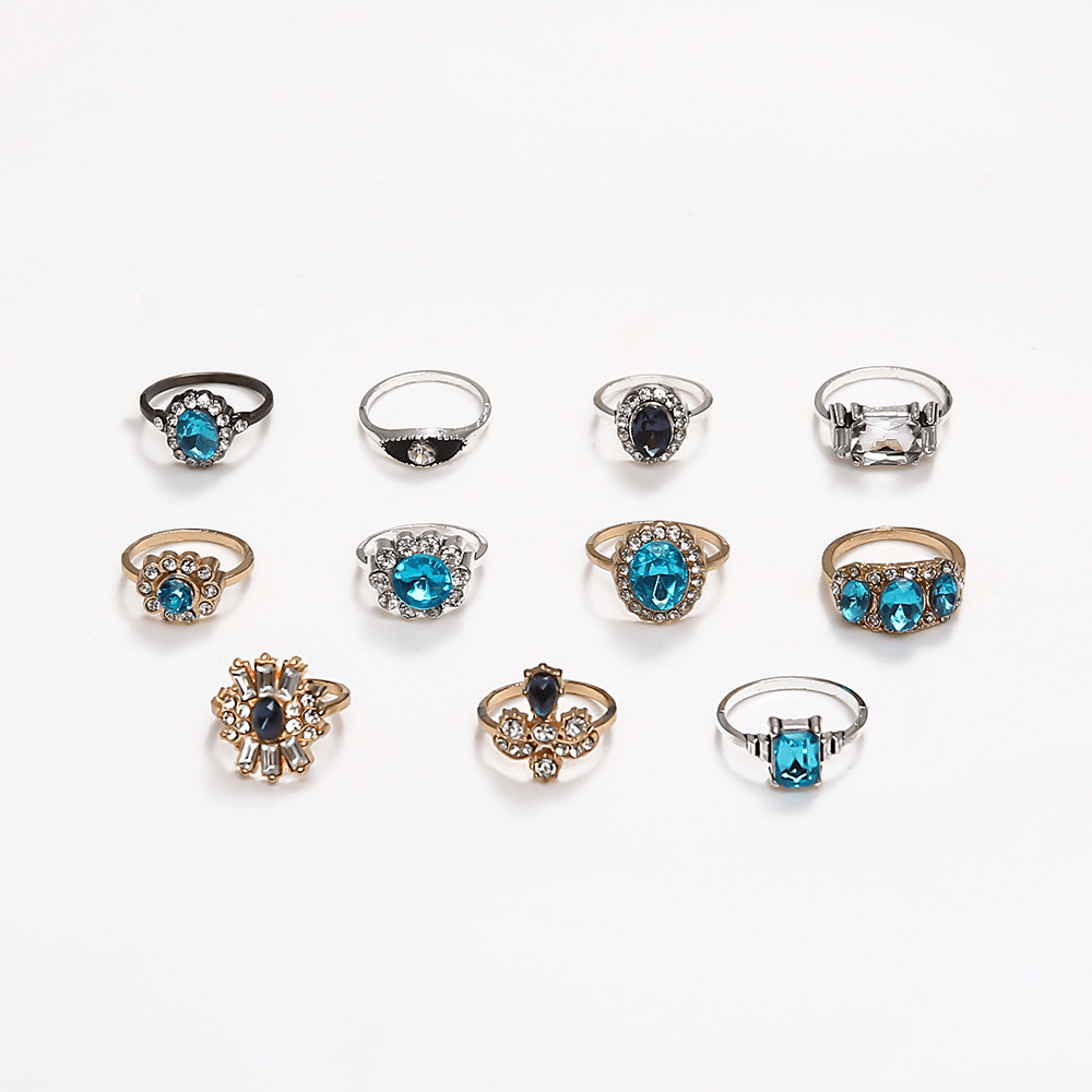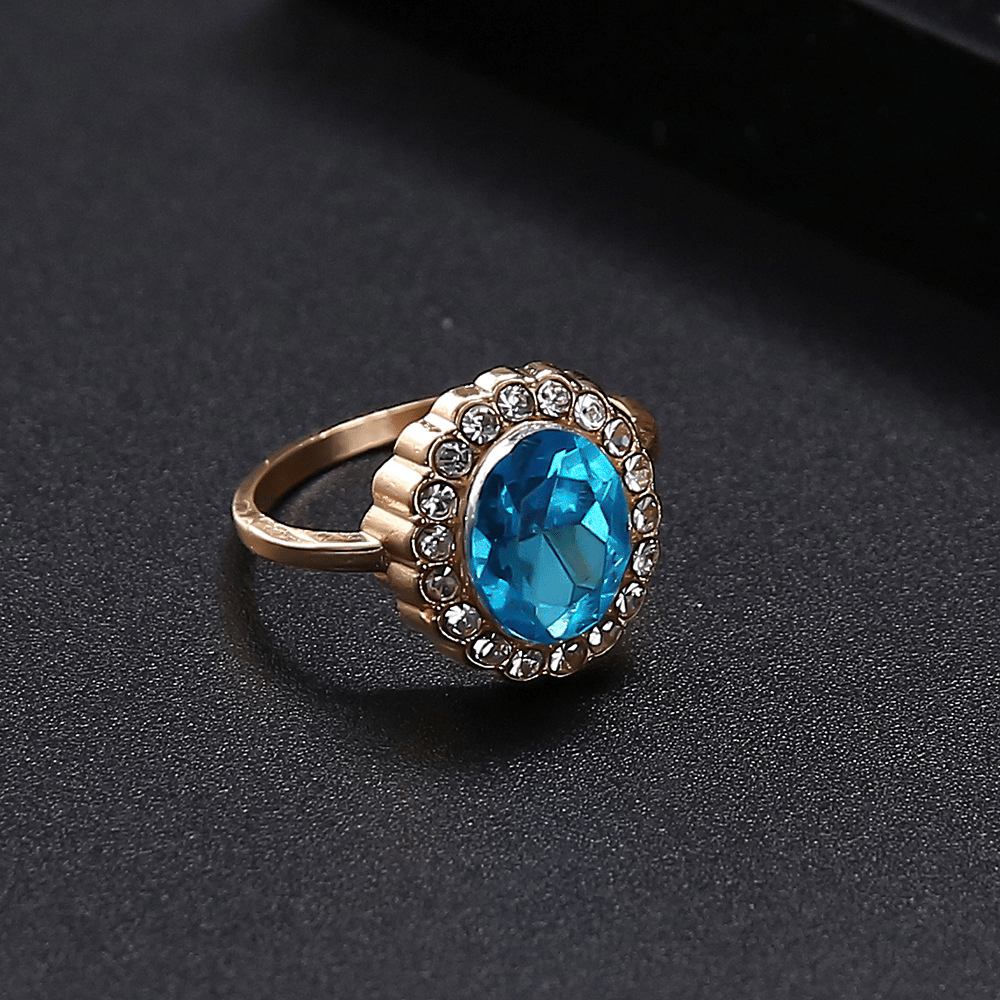 Fashion Temperament Diamond-set Sapphire Ring Slightly Inlaid Rhinestone Gold and Silver Two-color Ring for Women