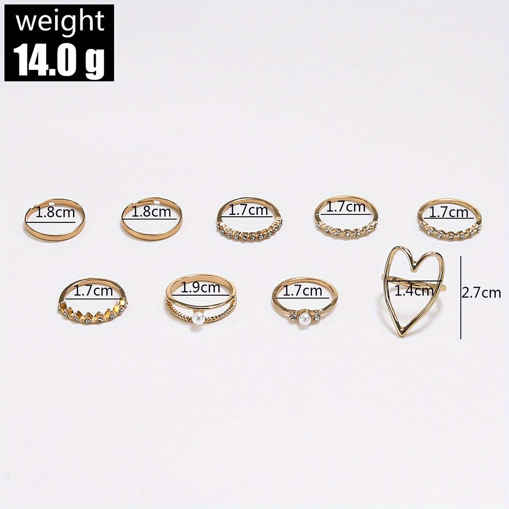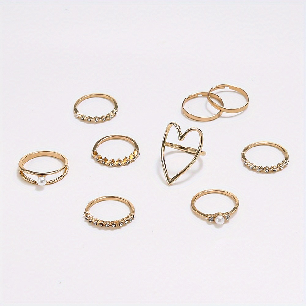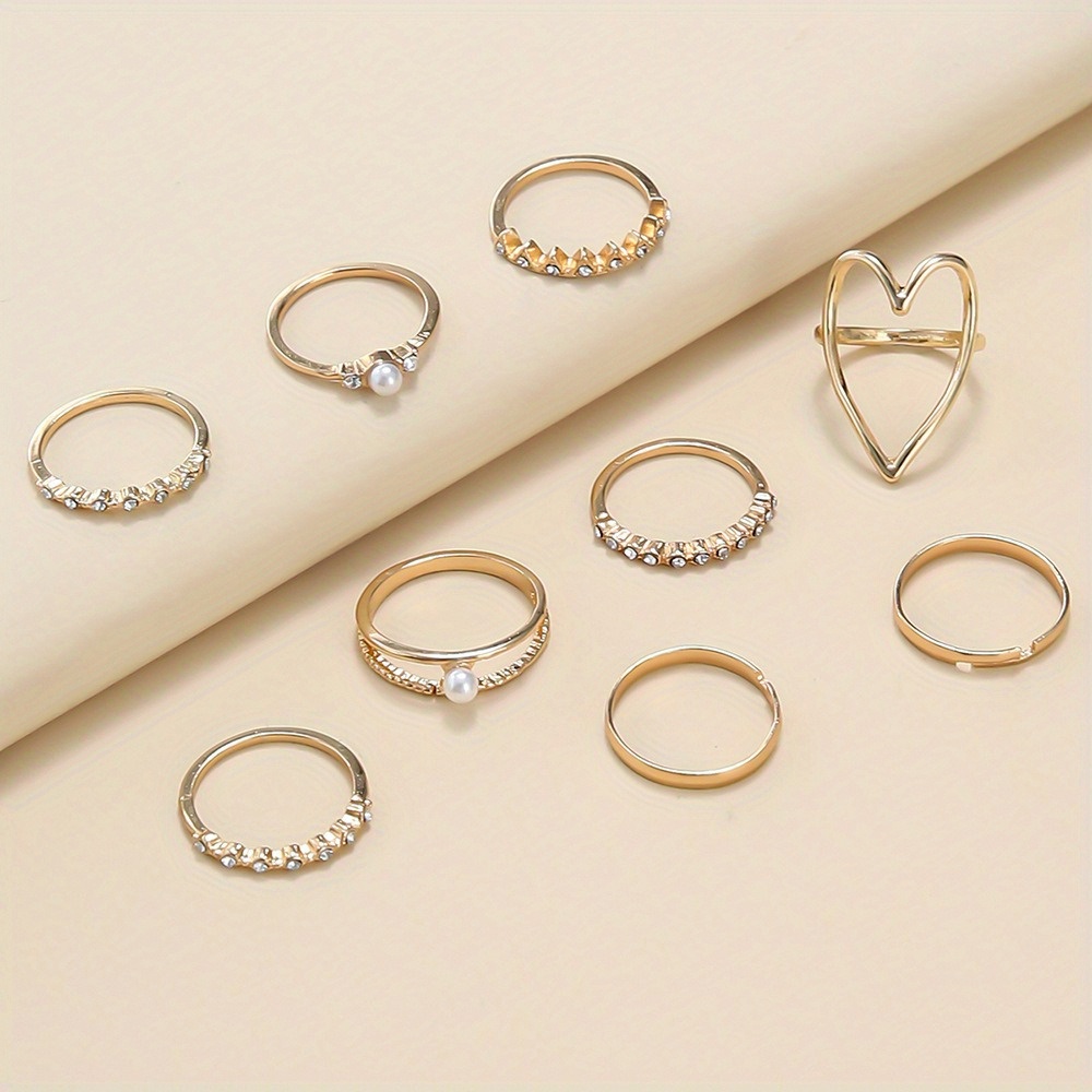 Fashion temperament full of diamond rings, personalized love pearls 9-piece ring women
