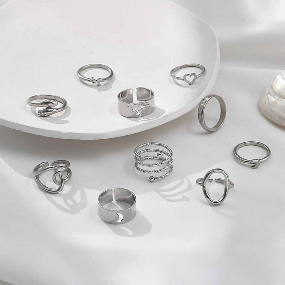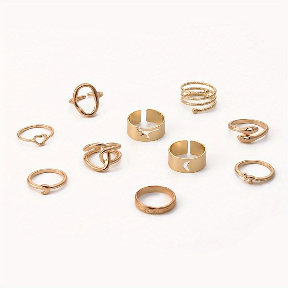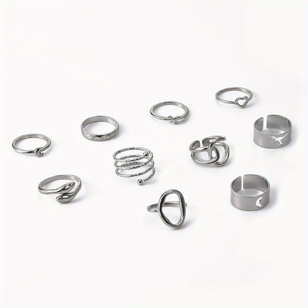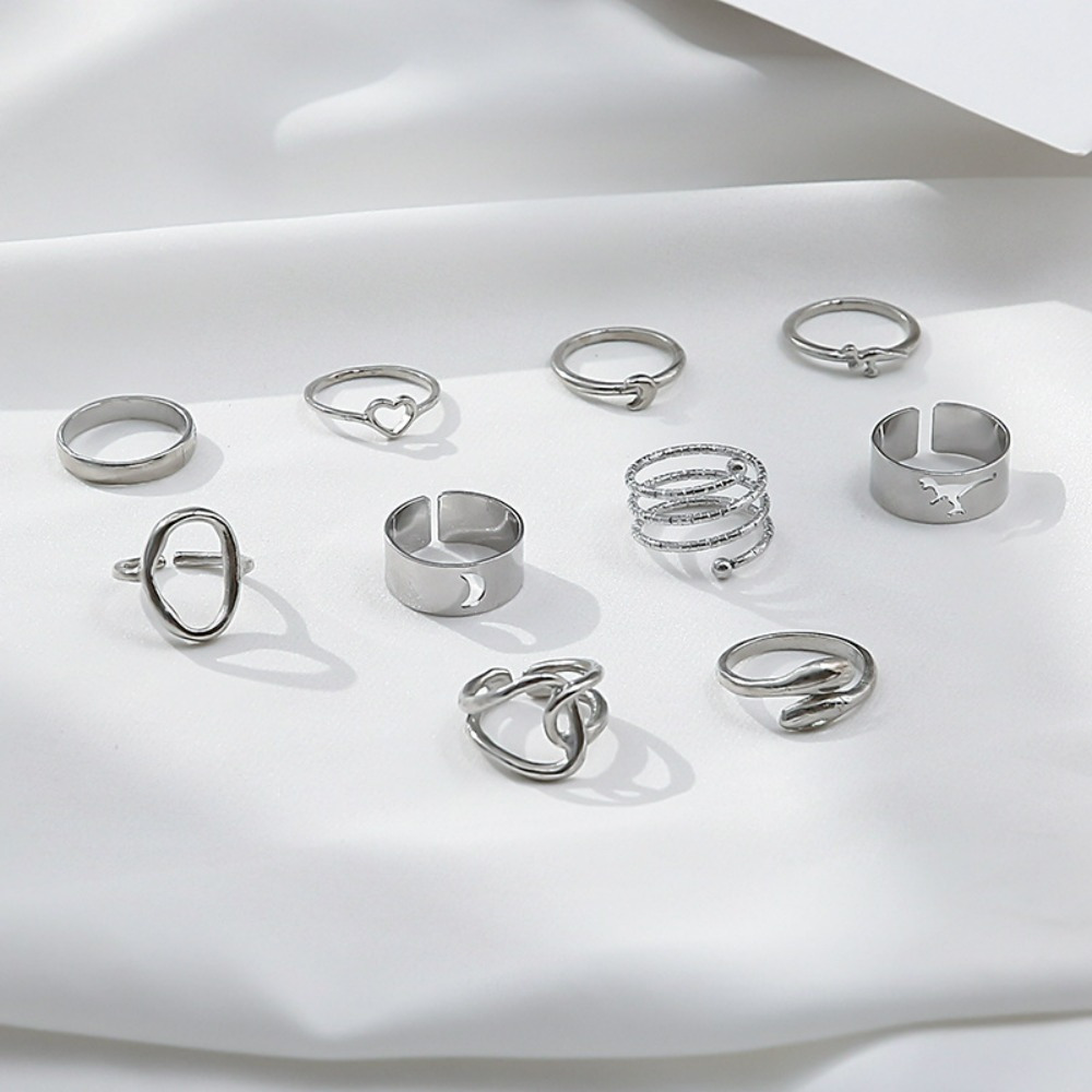Fashion Twisted Geometric Spring Animal 10-Piece Ring for Women