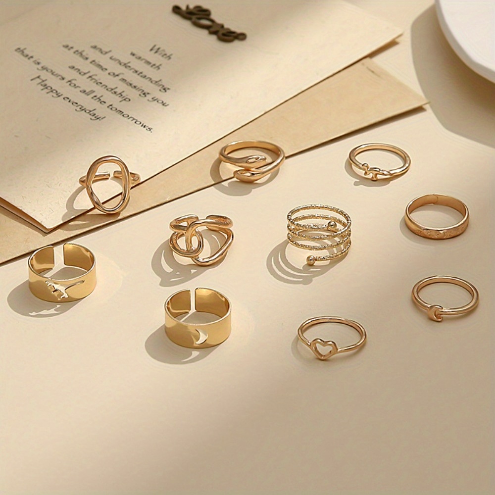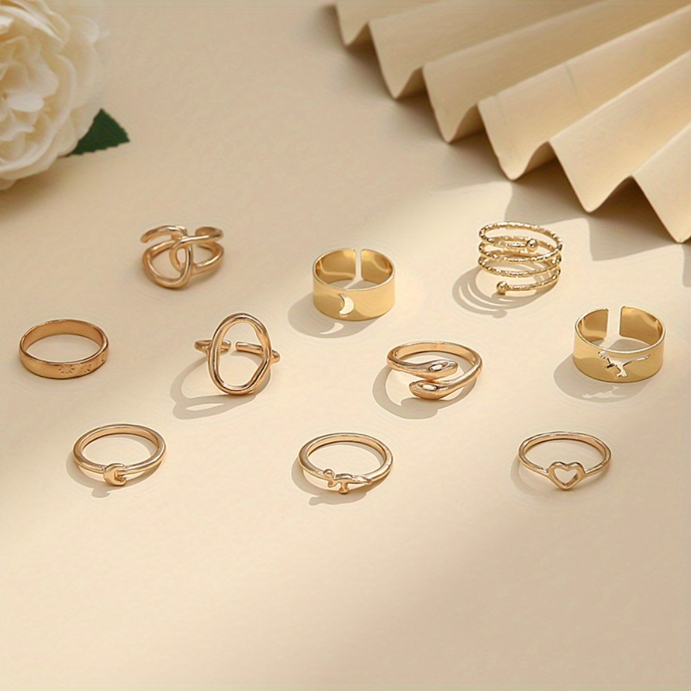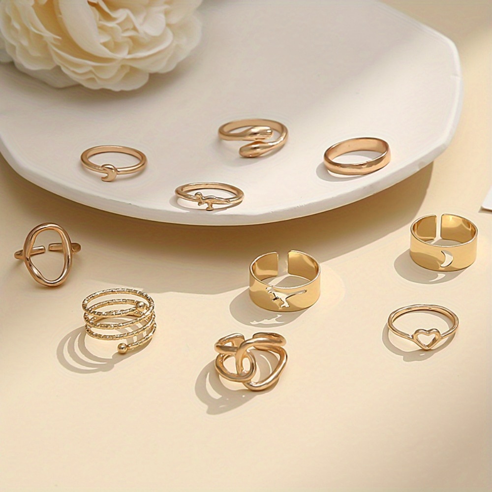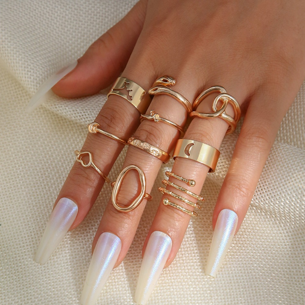Fashion Twisted Geometric Spring Animal 10-Piece Ring for Women