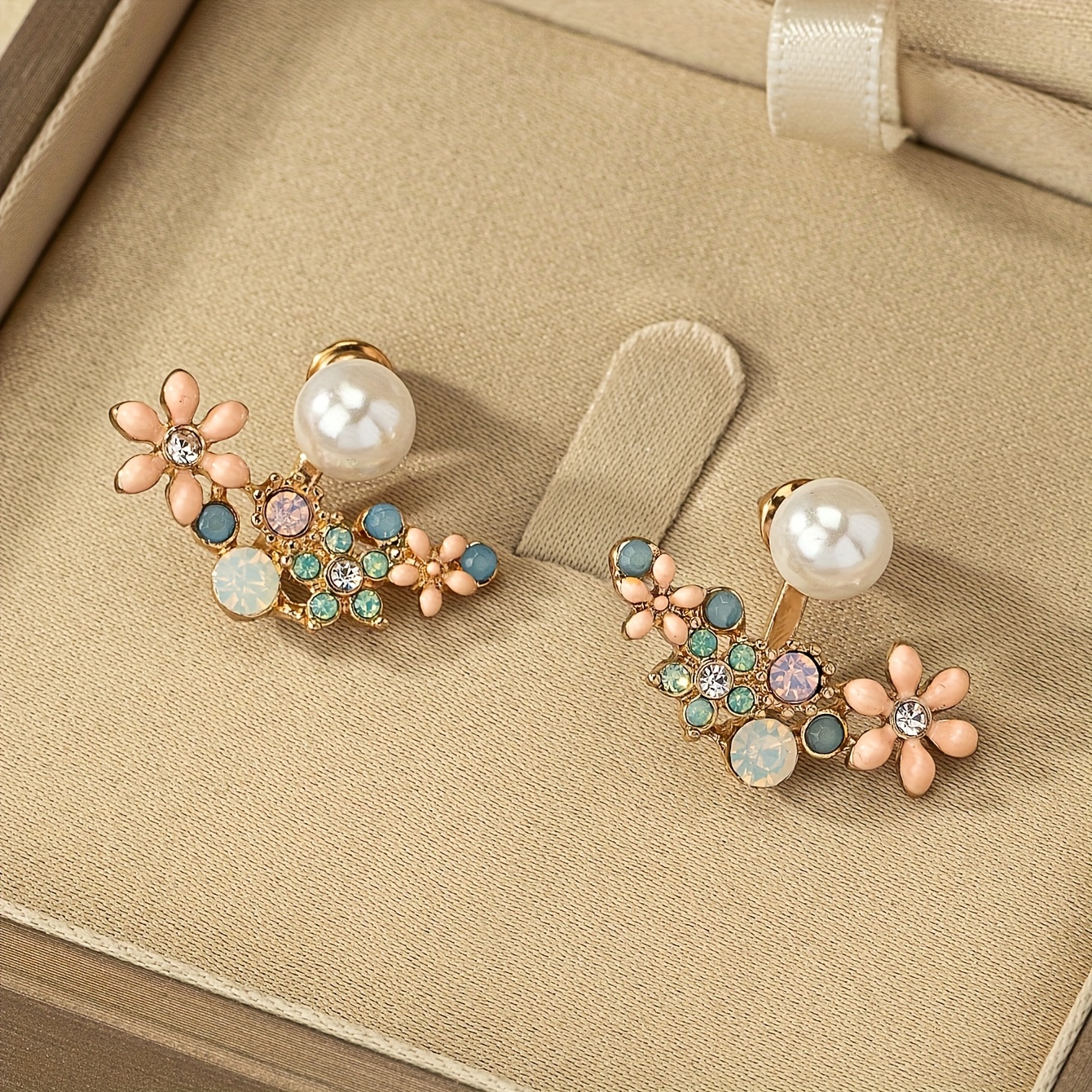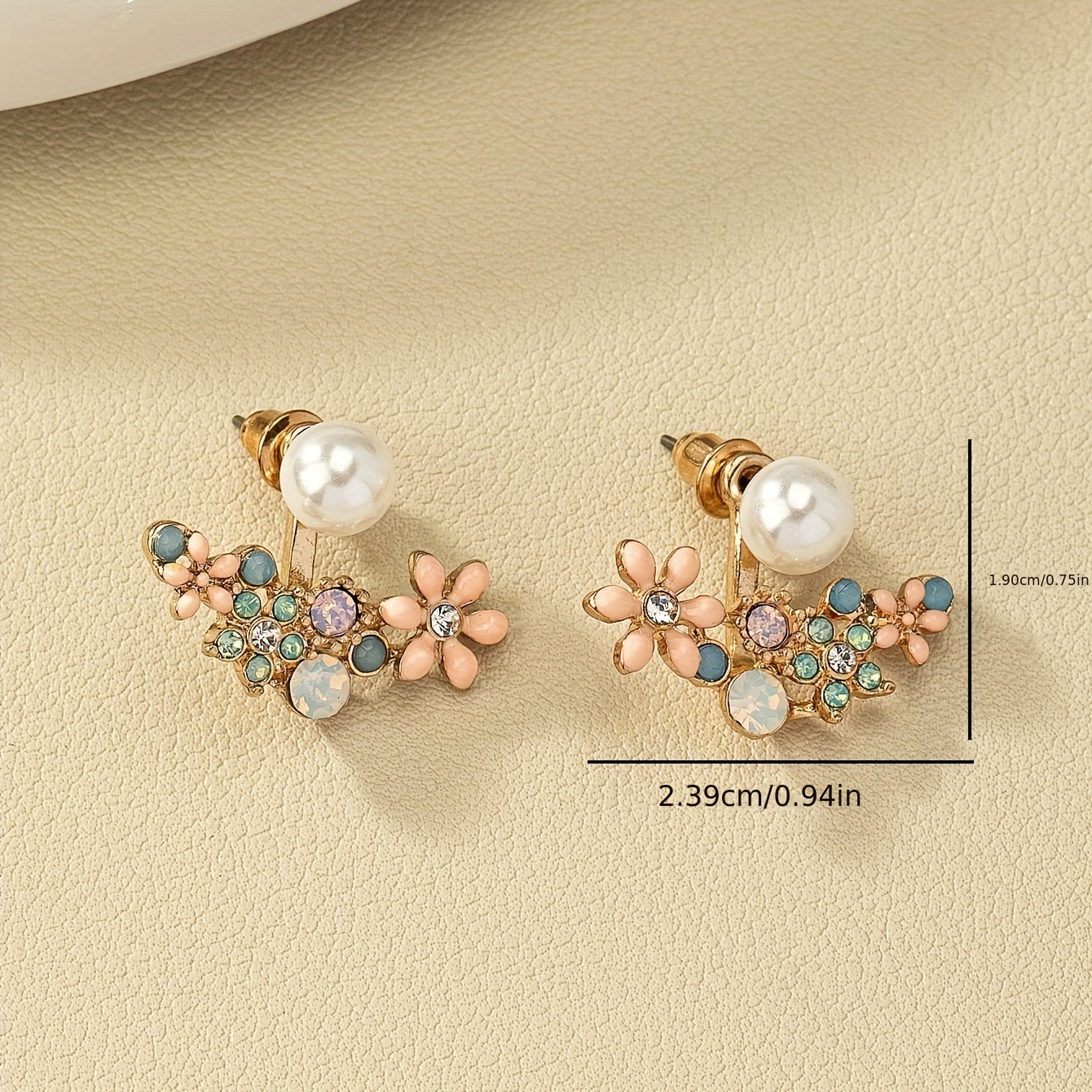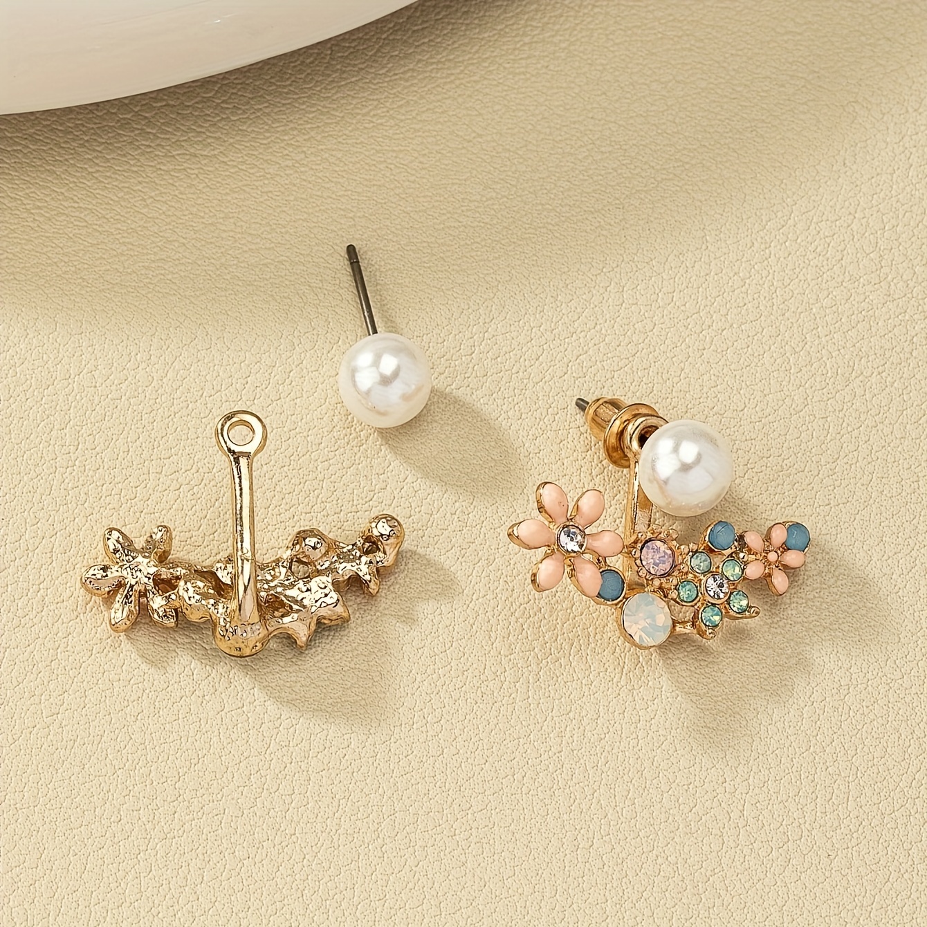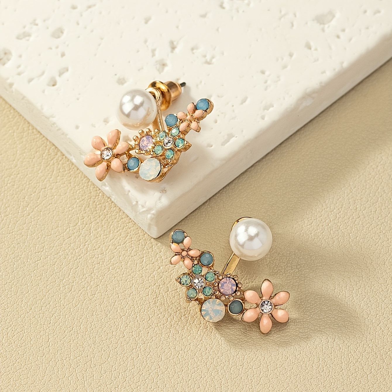 Fashion Vacation Style Flower Pearl Front and Back Earrings