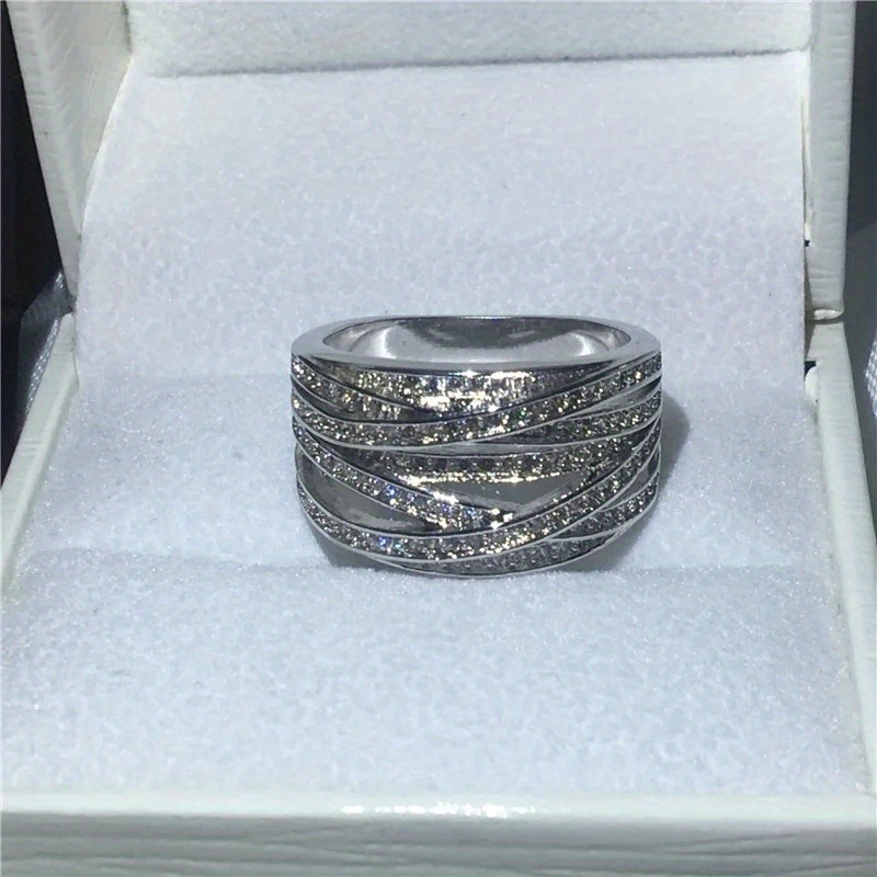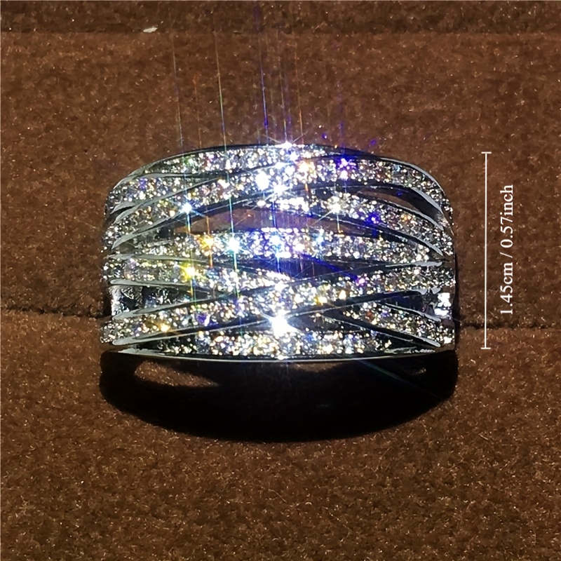 Fashion Wide Ring Silver Plated Inlaid Sparkling Zircon Interwoven Design Bridal Jewelry Dinner Party Decoration Anniversary Gift for Your Lover