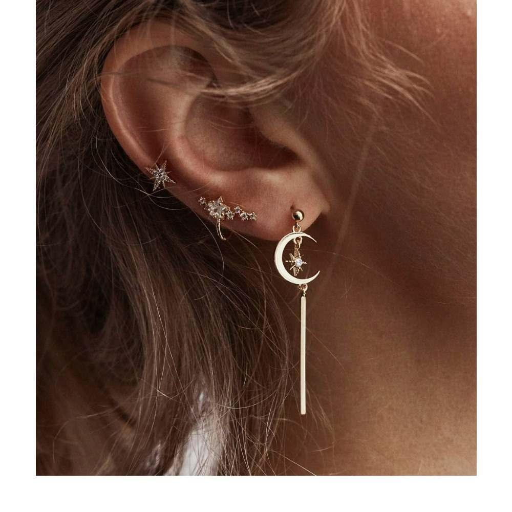 Fashion Wind Star Moon Micro Diamond Earrings Earrings