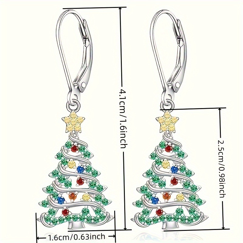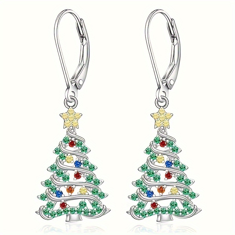 Festive, elegant Christmas tree pendant earrings set with shiny cubic zirconia - nickel-free copper for everyday wear and parties