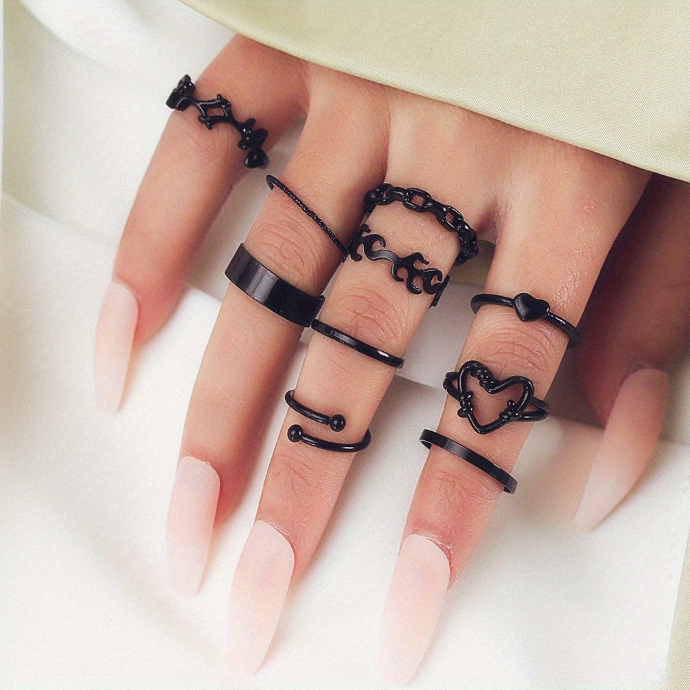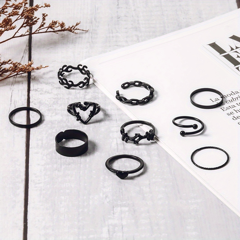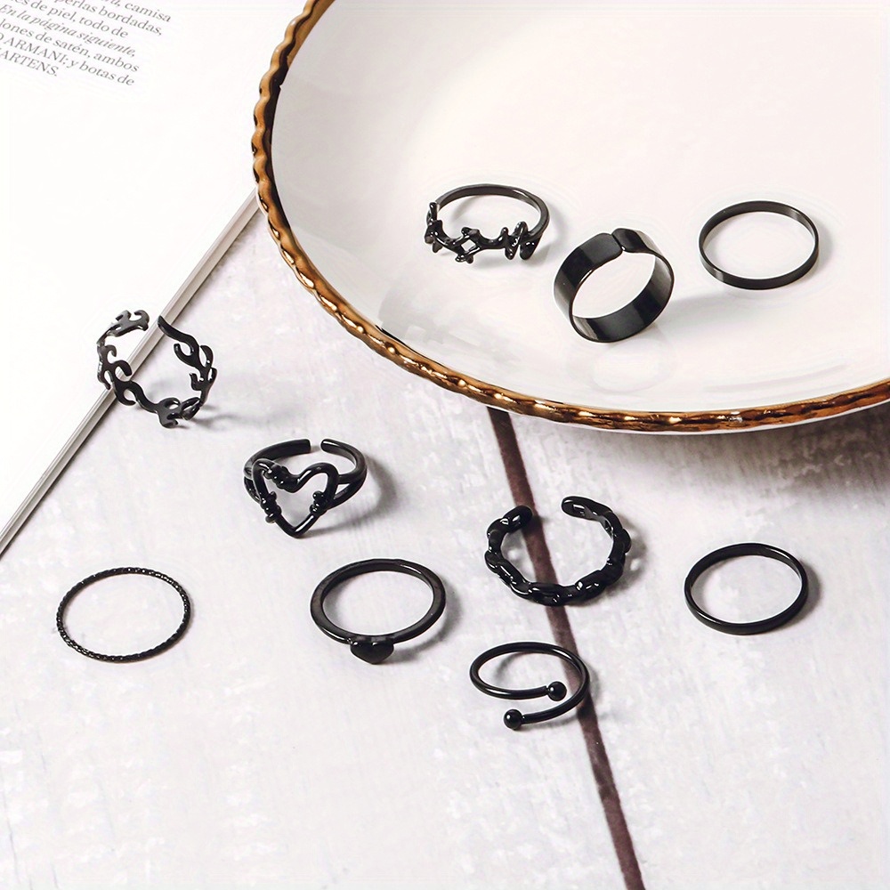 Fire Cloud Ring, Fashion Love Open Chain Twist Electrophoresis Black 10-piece Set Ring Women