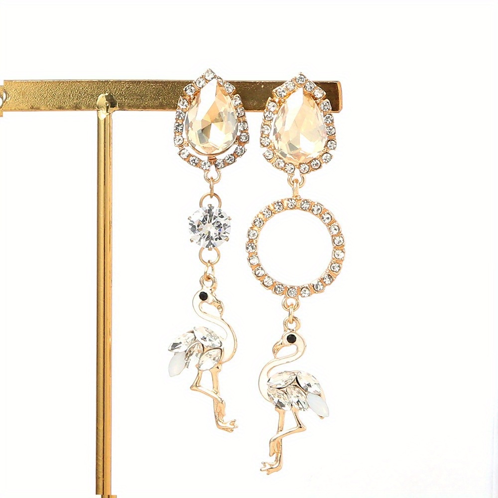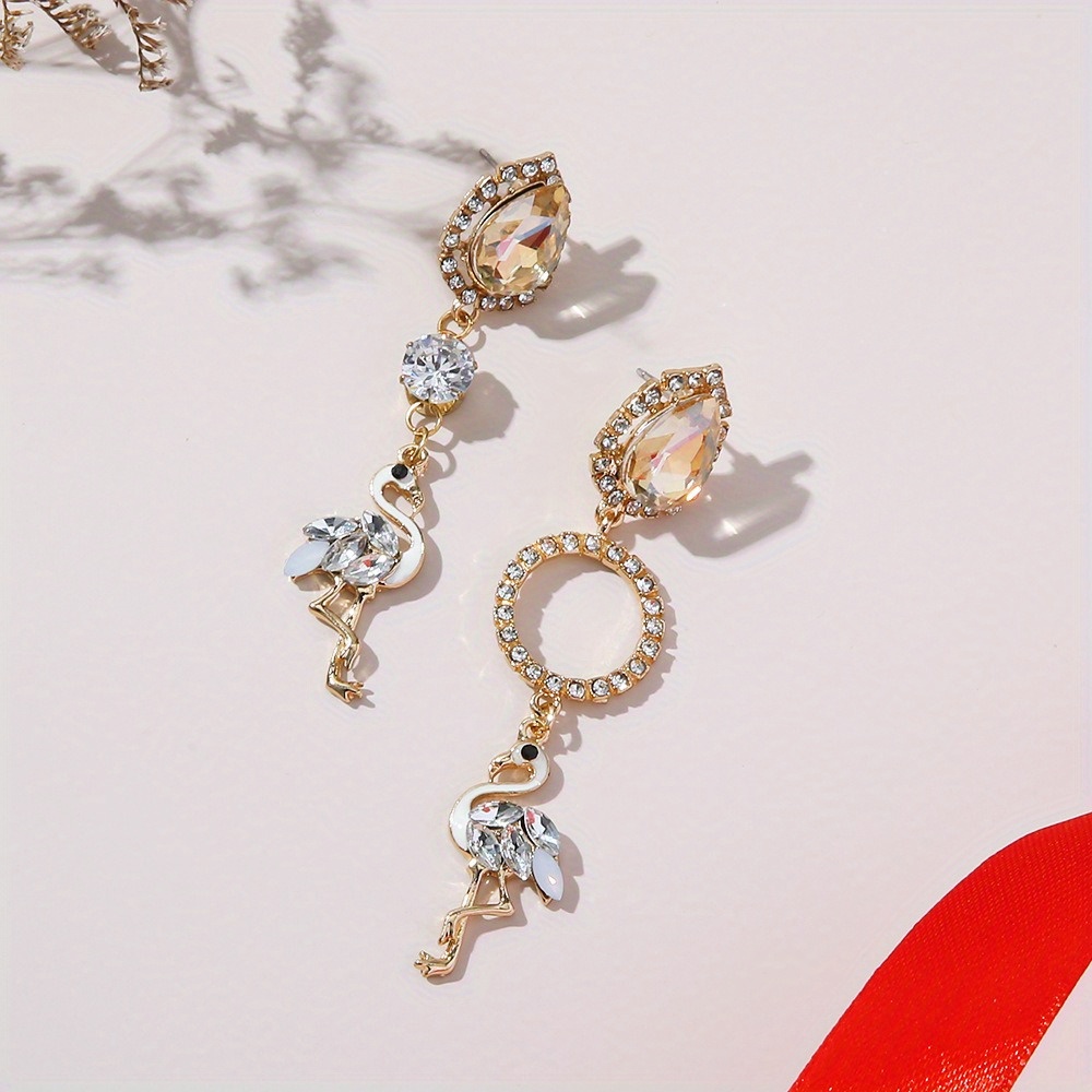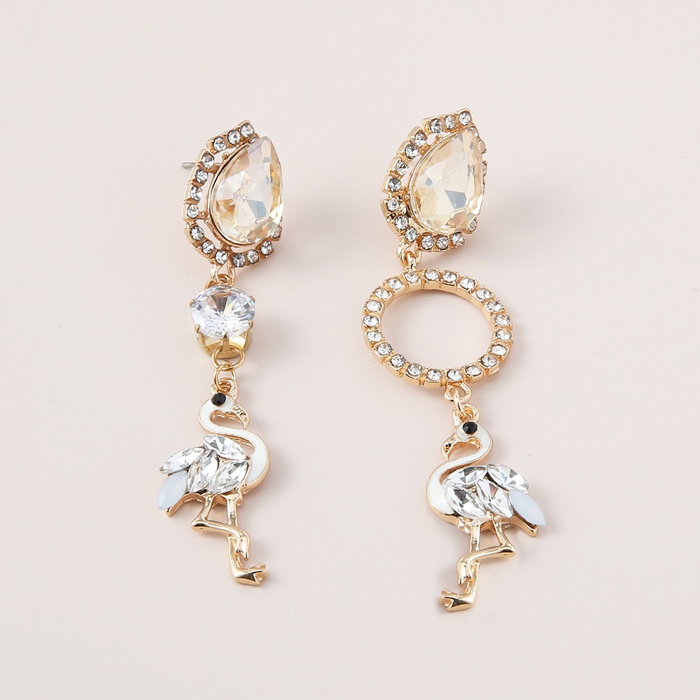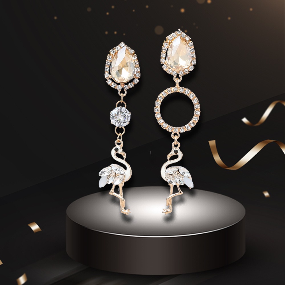 Flamingo Earrings Women's Long Rhinestone Fringed Versatile Earrings Stud Earrings Pendant Earrings