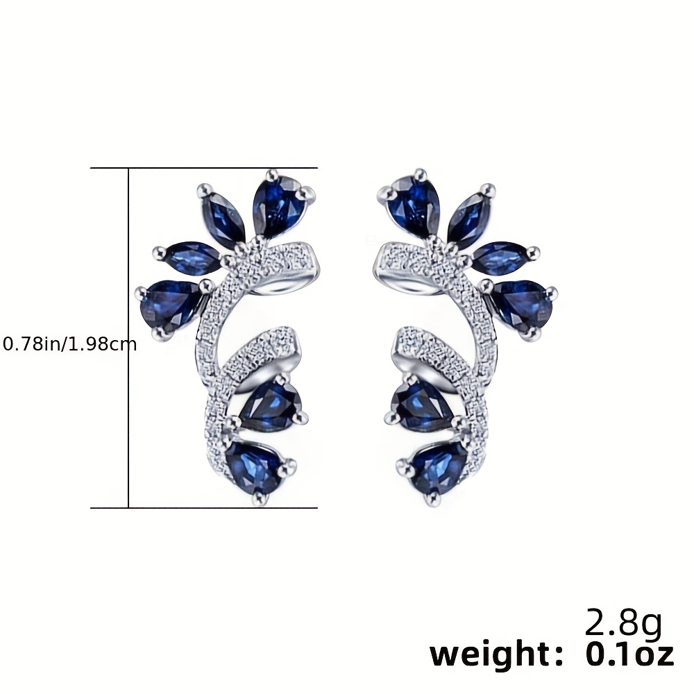 Flower stud earrings with Zirconia climbing vine earrings, 925 silver-plated, party and holiday decoration, lady's gift, a pair.