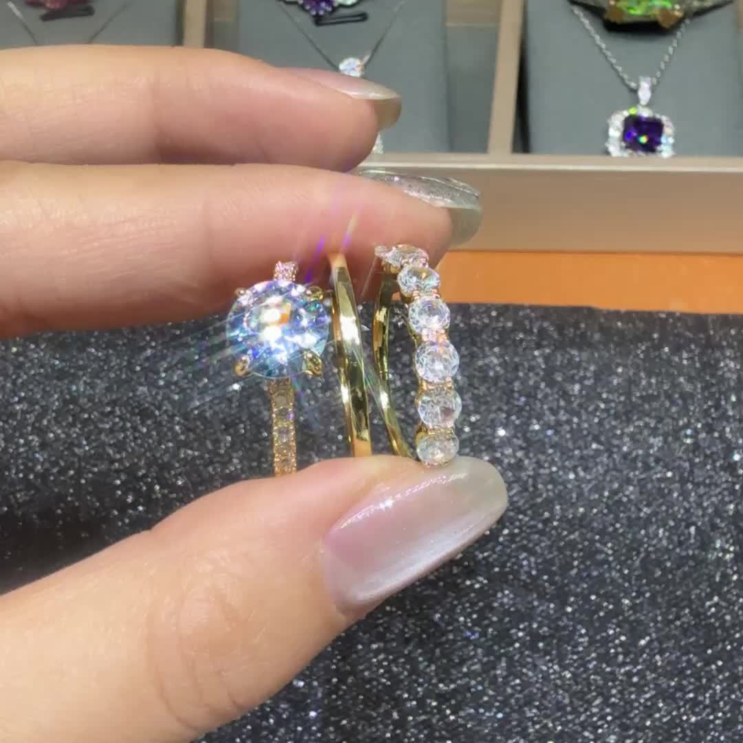 Four-claw white synthetic zirconia women's two-piece ring, fashionable ring set for Christmas