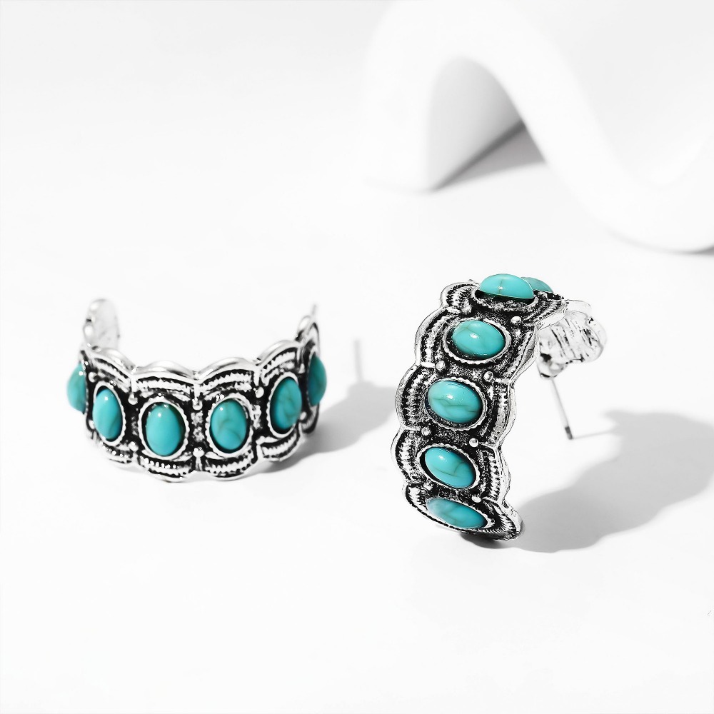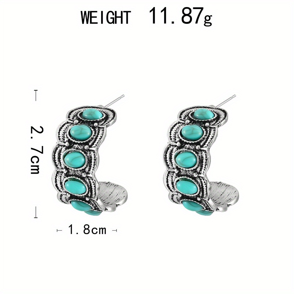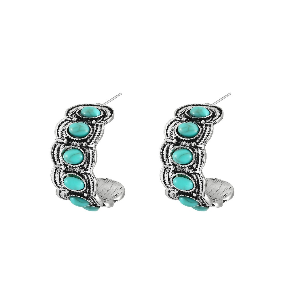 Geometric retro earrings women's personality inlaid with green natural stone stud earrings creative C-shaped earrings women
