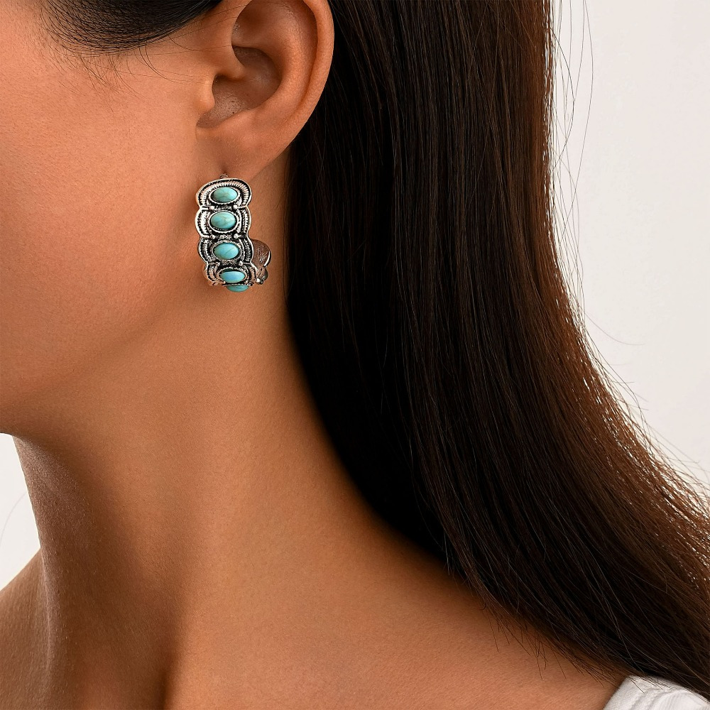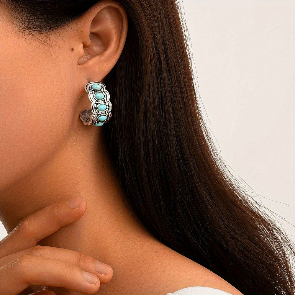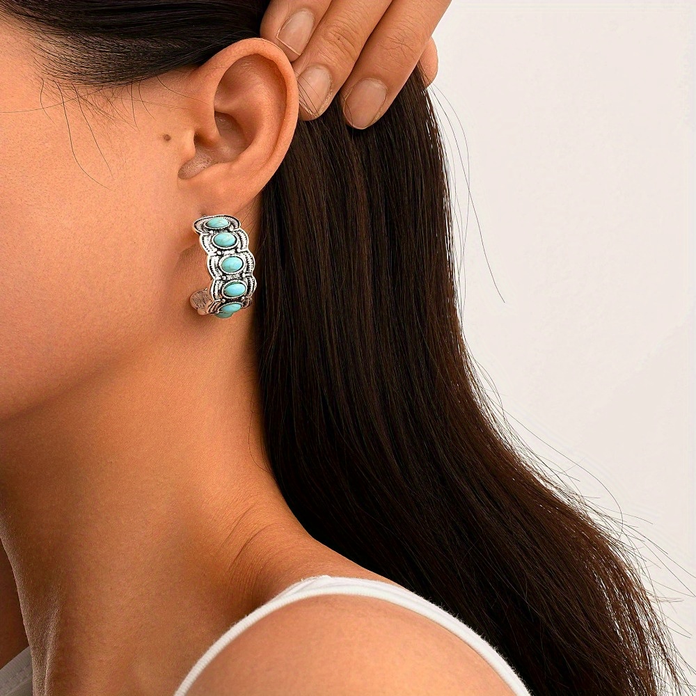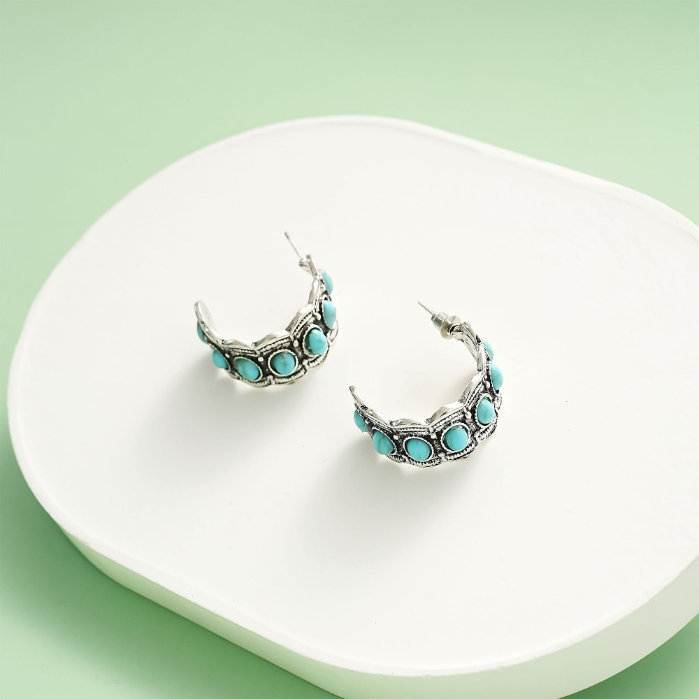 Geometric retro earrings women's personality inlaid with green natural stone stud earrings creative C-shaped earrings women