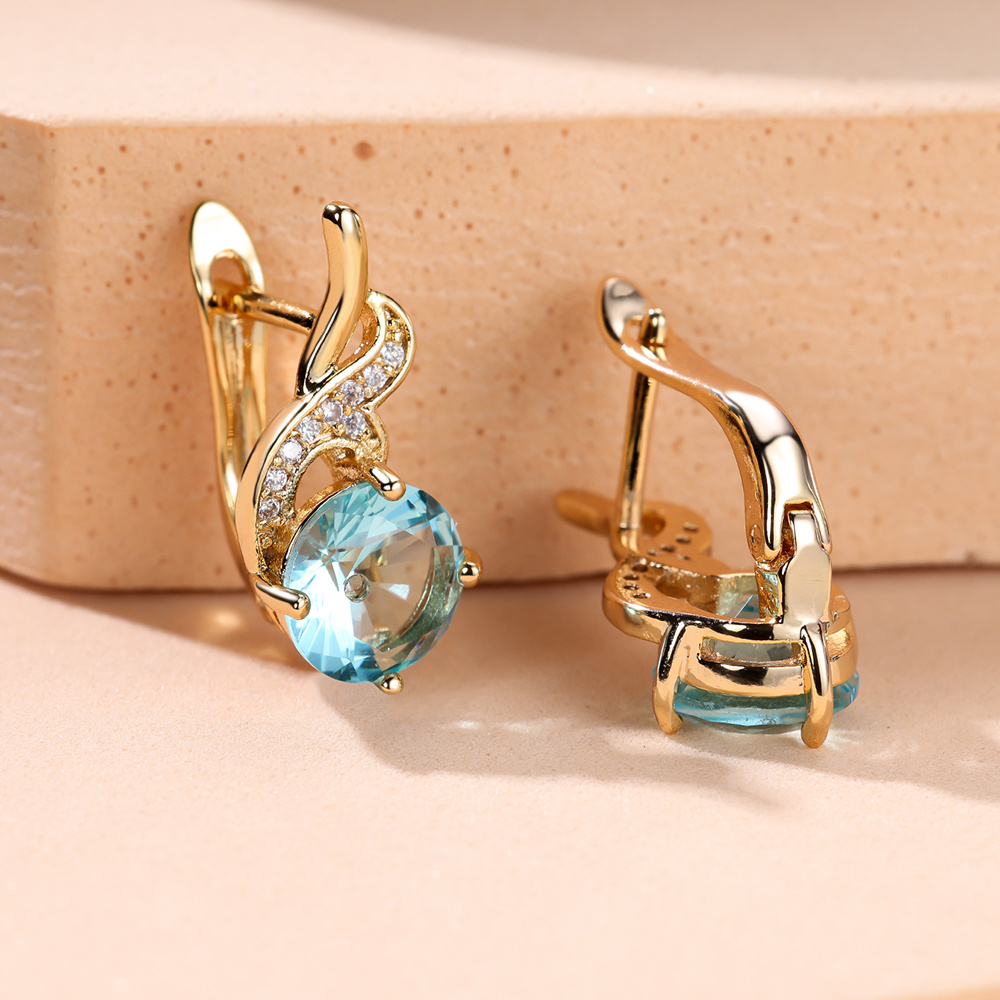 Glamour round cut aquamarine drop ear endless ring stud earrings, suitable for women to pretend wedding stud earrings