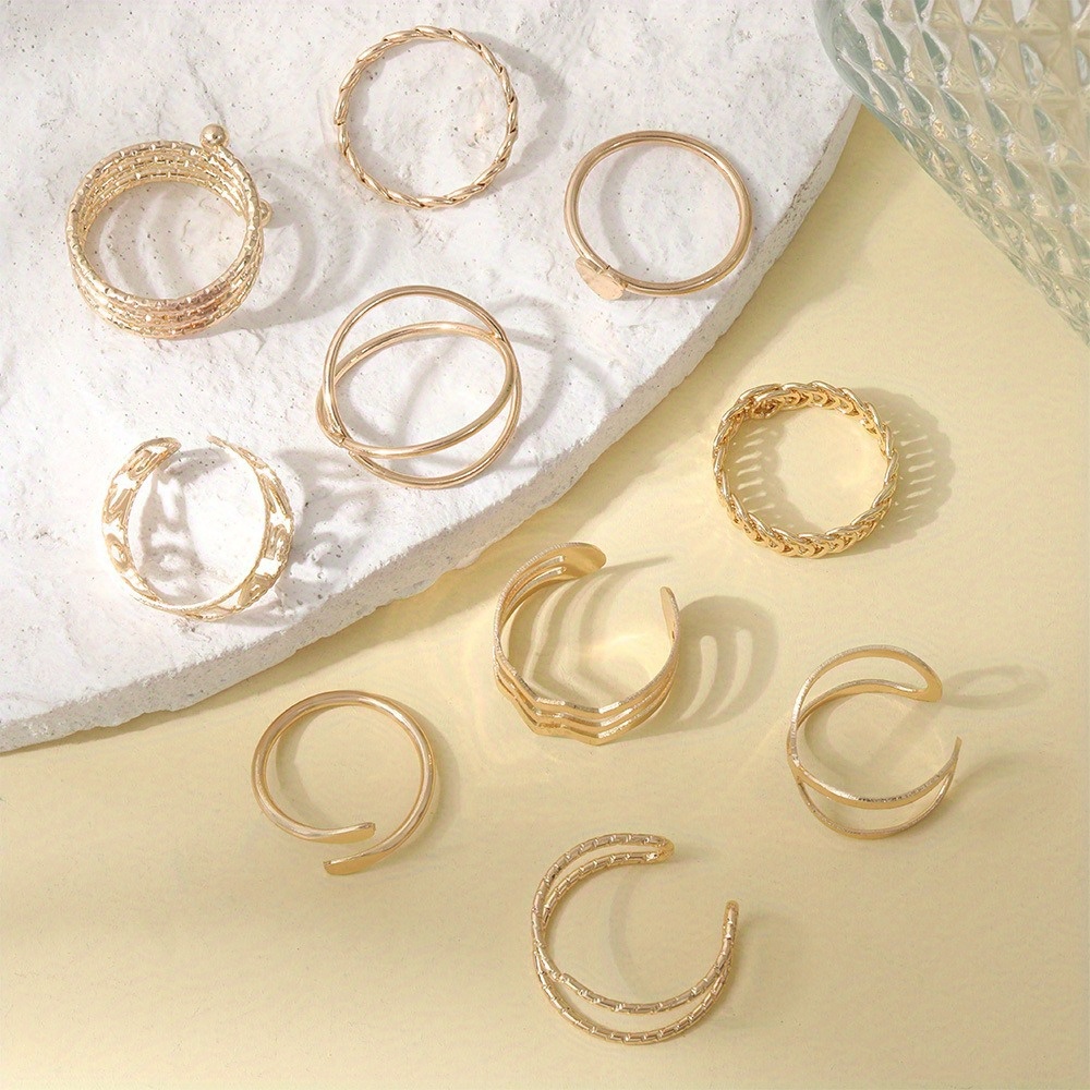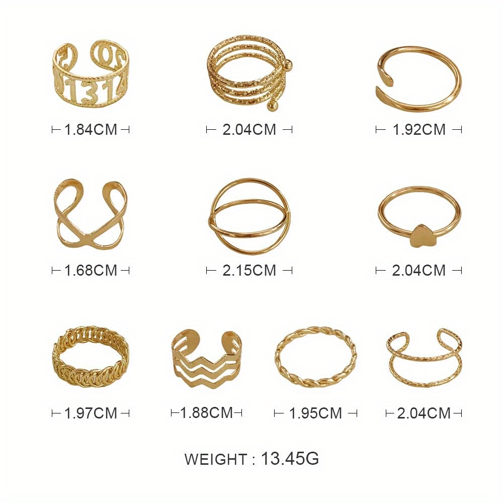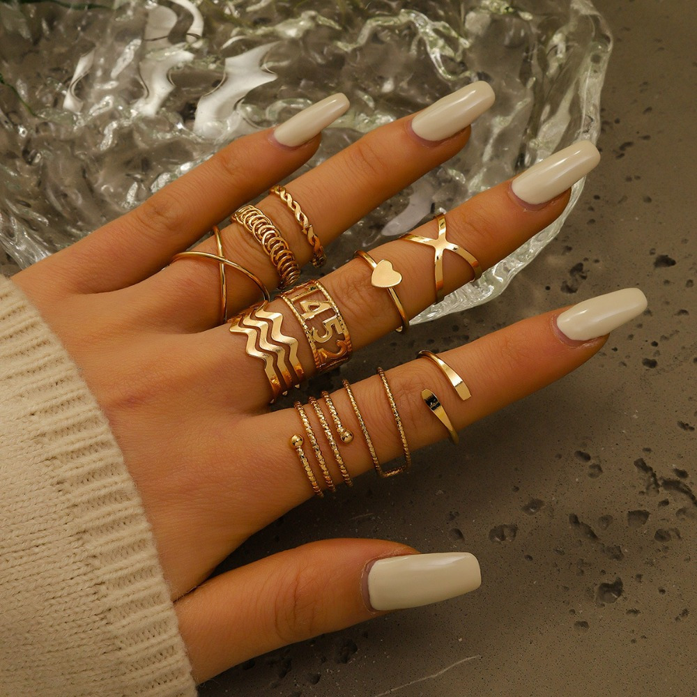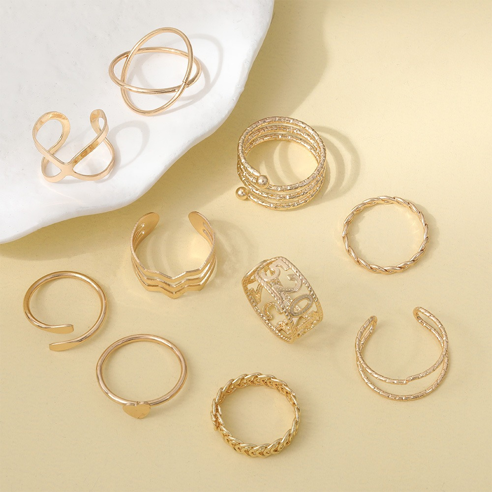 Gold hollow number 5201314 love cross multi-layer opening 10-piece set ring jewelry