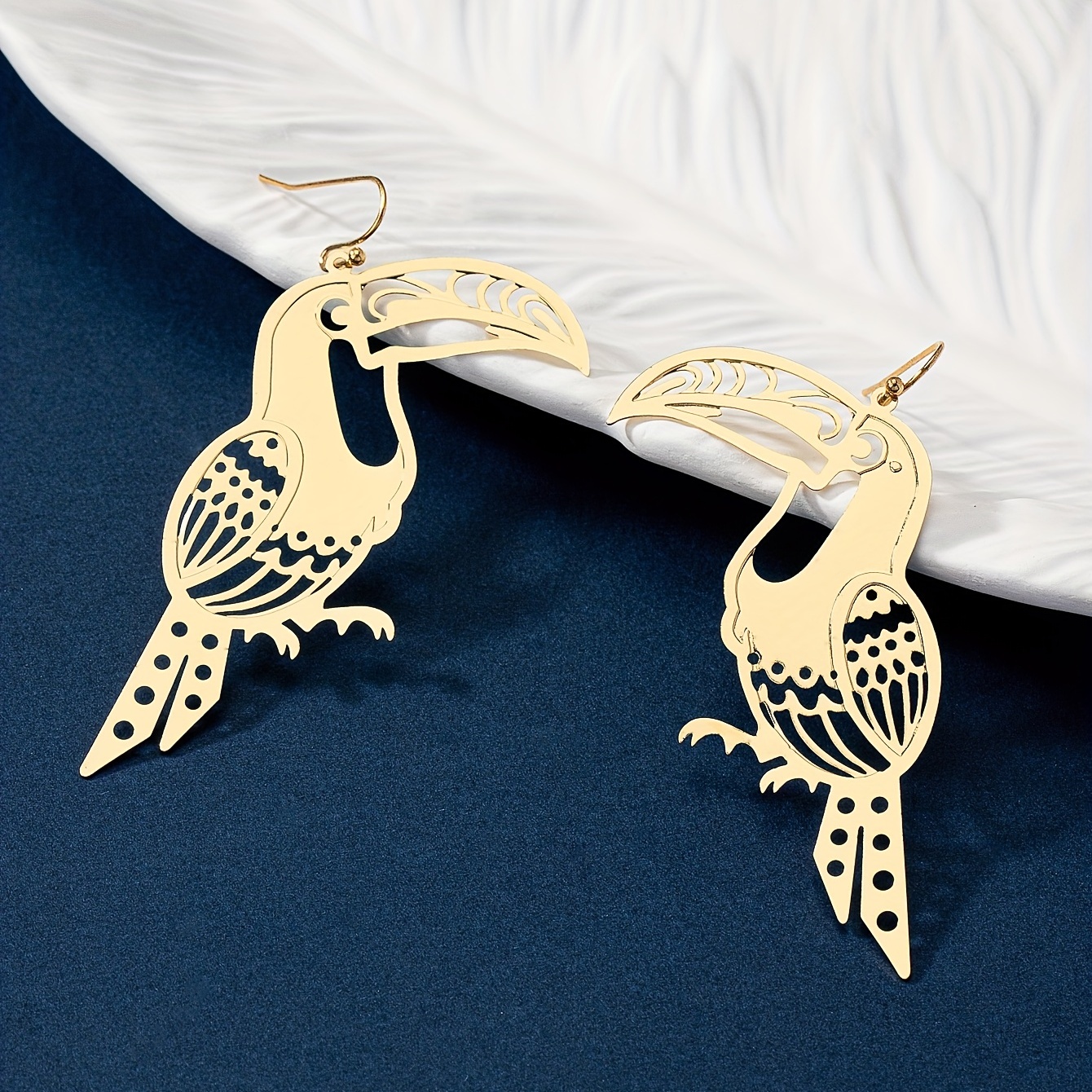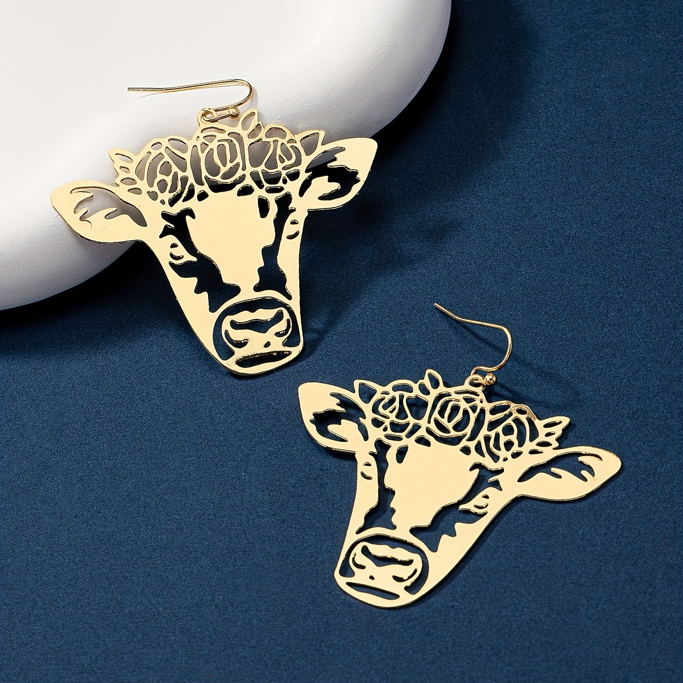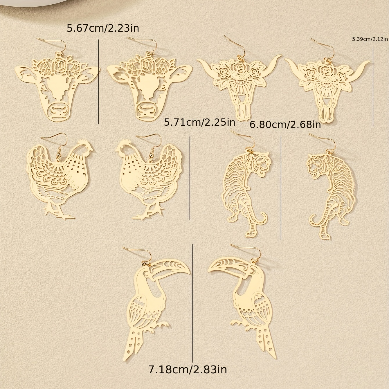 Gold Metal Animal Design Hollow Pendant Earrings Vintage Vacation Style Copper Jewelry Exquisite Women's Gifts