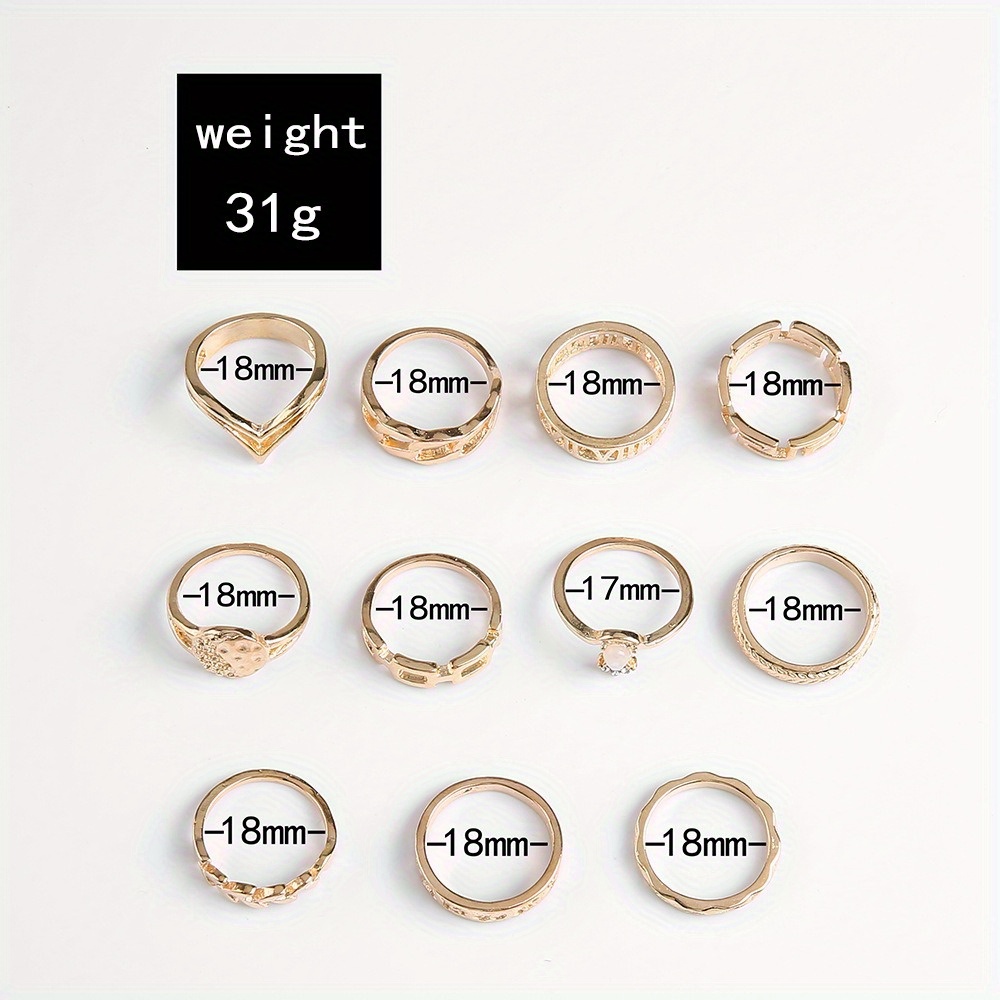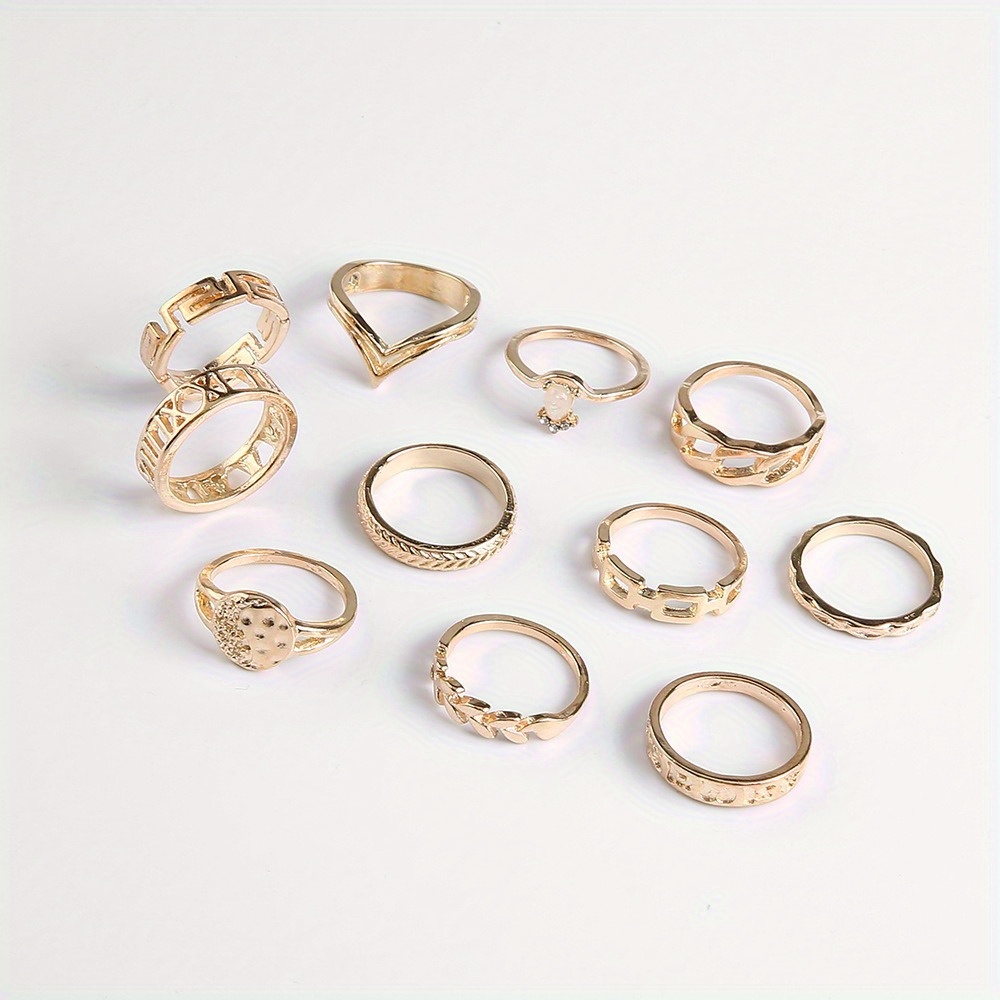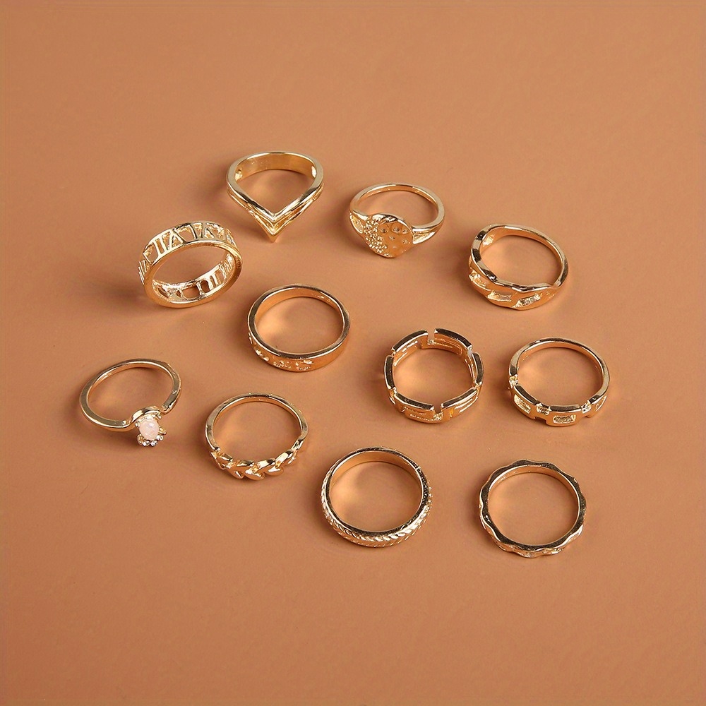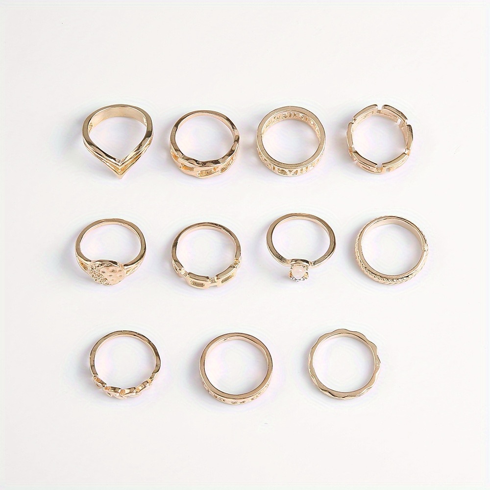 Gold ring 11-piece set, simple style, fashionable and creative retro geometric ring set