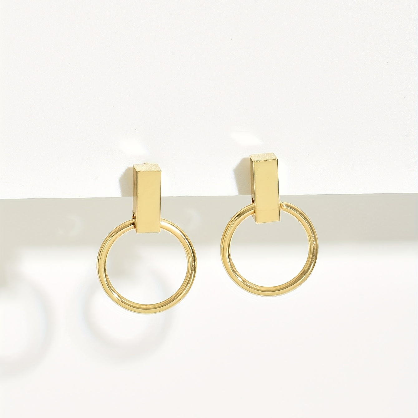 Golden round design stud earrings elegant simple style copper jewelry fashion Women's gift