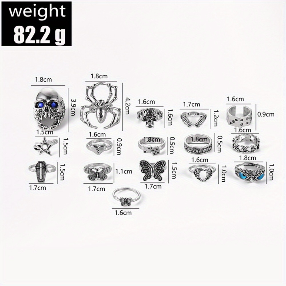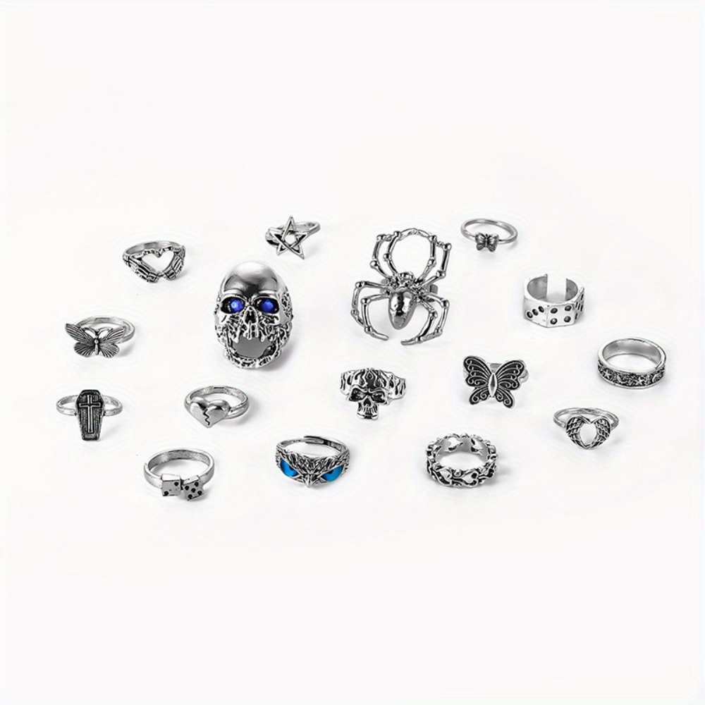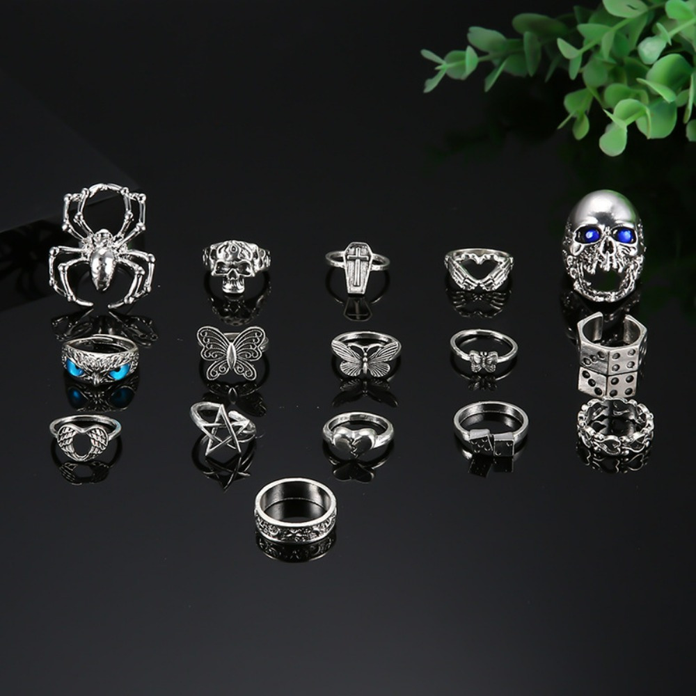 Halloween Ornaments Skull Spider Animal Ring Combination 16-piece Set