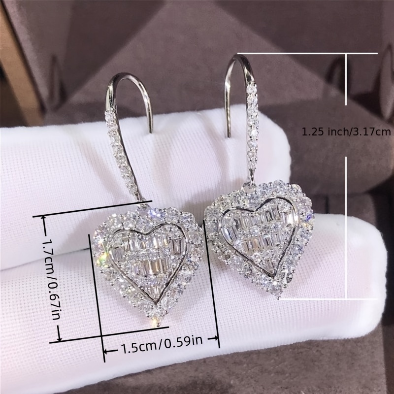 Heart-shaped hook earrings with sparkling zircon, elegant copper, exquisite jewelry gifts.