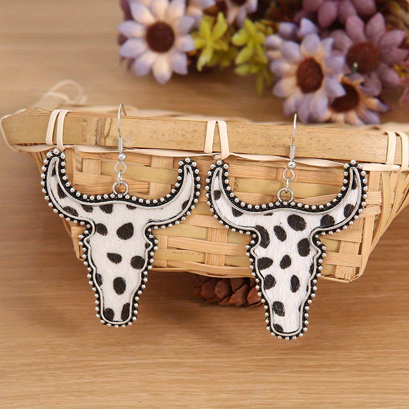 Herd/Leopard Bull Head Design Pendant Earrings, Retro Ethnic Style Western Holiday Earrings