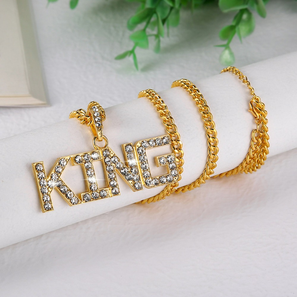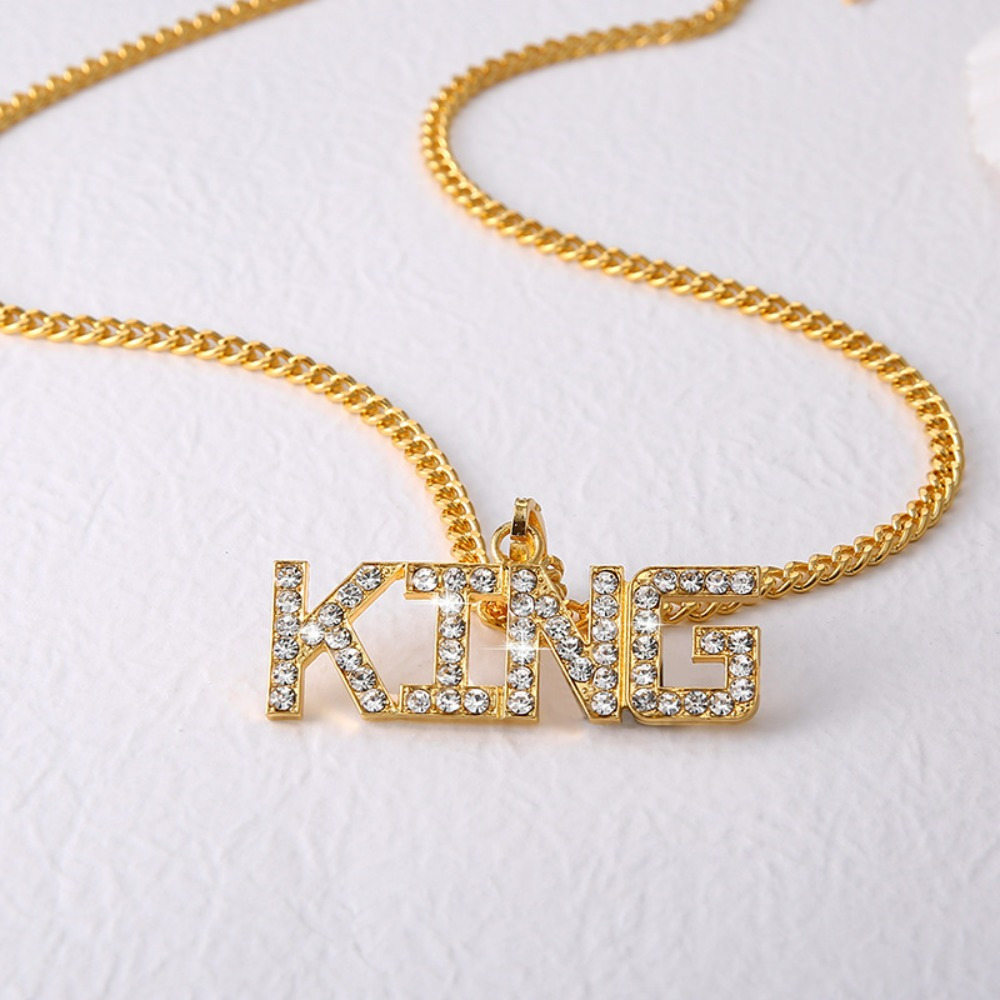 Hip Hop King Letter Men's Necklace Fashion Diamond Pendant Cover