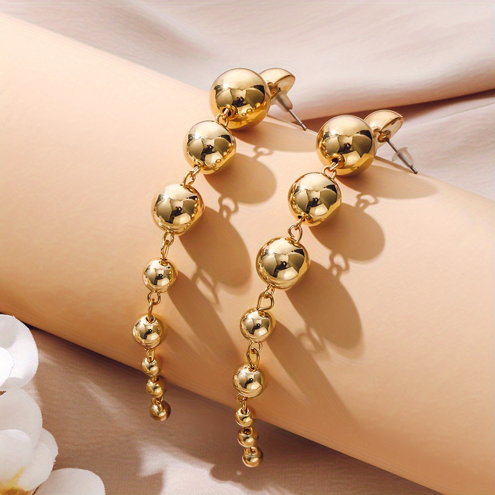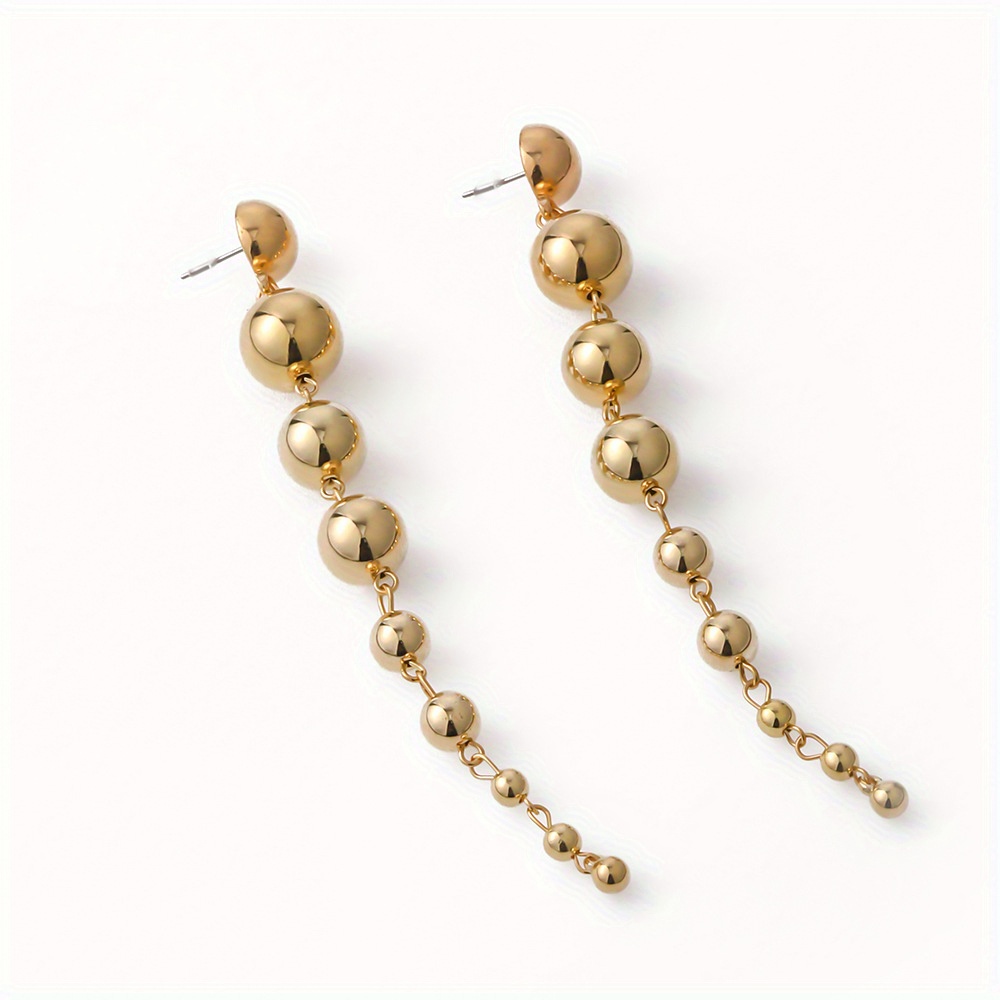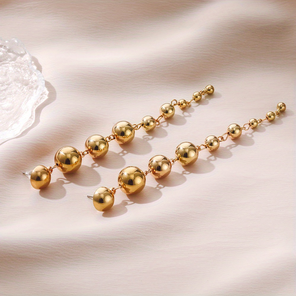 Hip-hop Punk Metal Round Bead Stud Earrings for Women, Trendy Retro Simple Geometric Long Earrings.