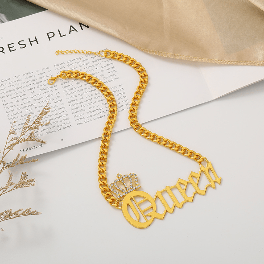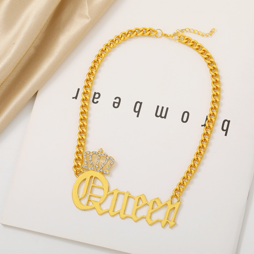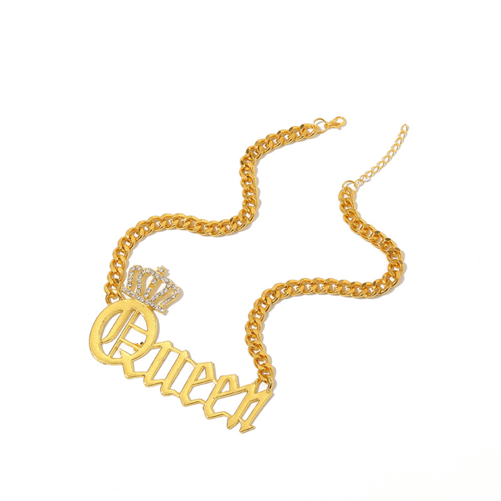 Hipster Crown English Young Queen Diamond Queen Pendant Necklace Hip Hop Exaggerated Necklace