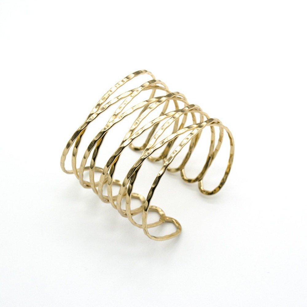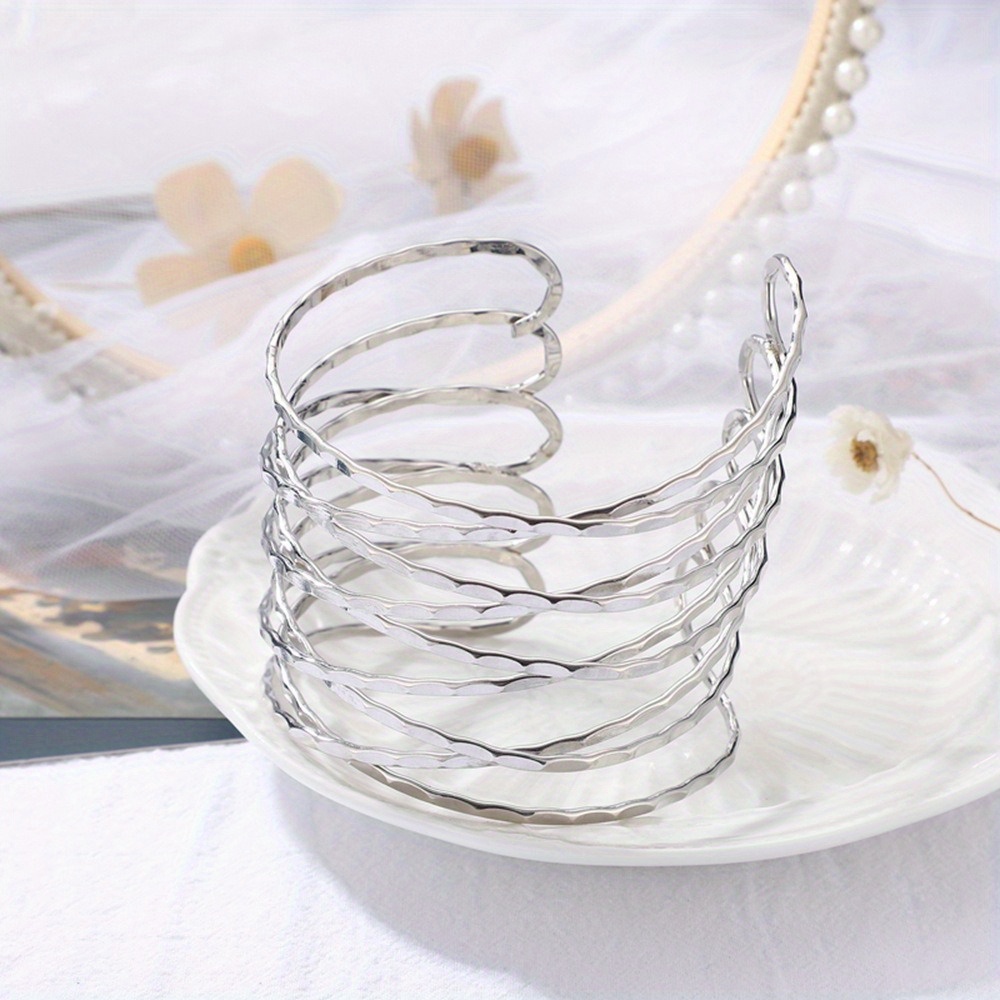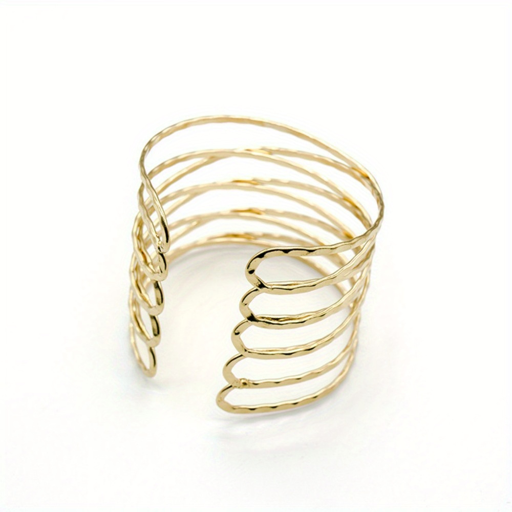 Hollow Double Layer Crossed Arm Ring, Mesh Metal Bracelet Open Bracelet