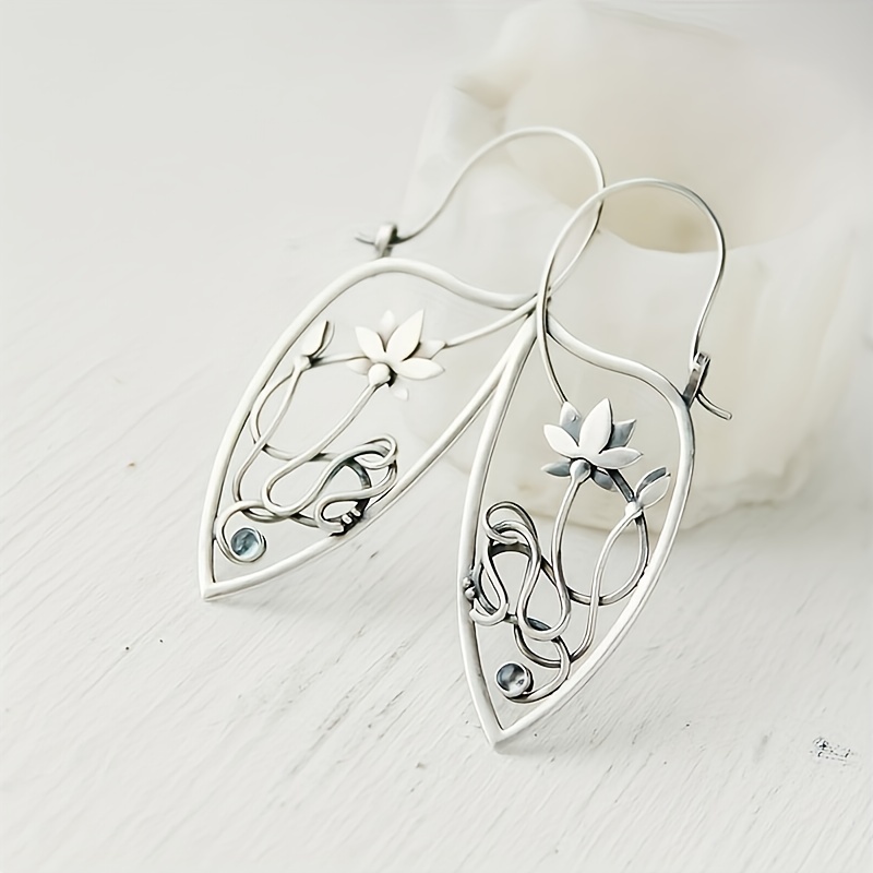 Hollow Lotus Pendant Earrings Silver High Jewelry Delicate Design Silver Plated Girl Girl