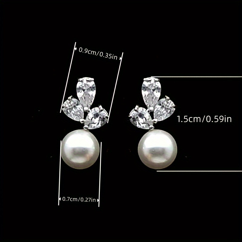 Imitation Pearl Pendant Shiny Zirconia Trim Stud Earrings Vintage Elegant Style Silver Plated Jewelry Wedding Accessories
