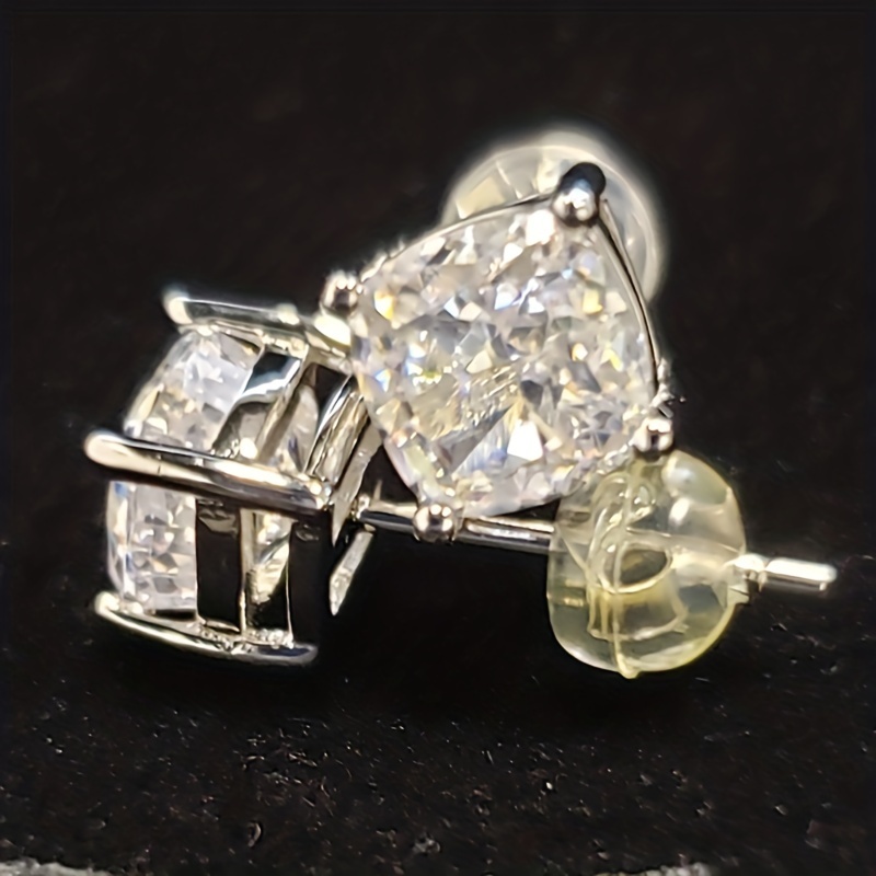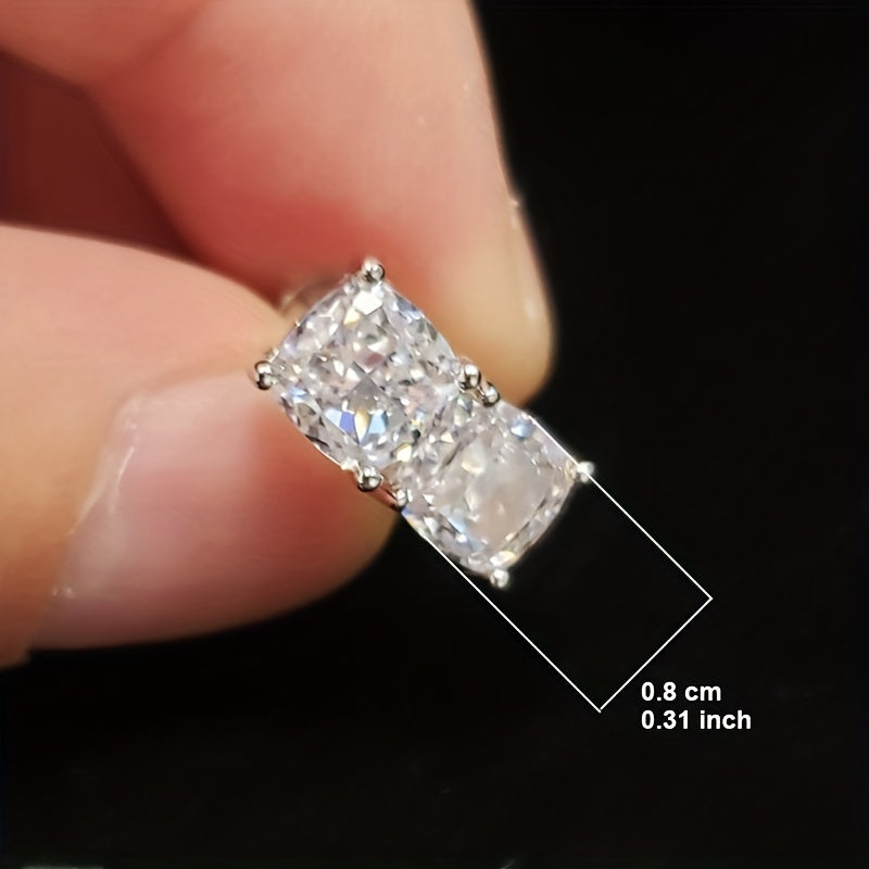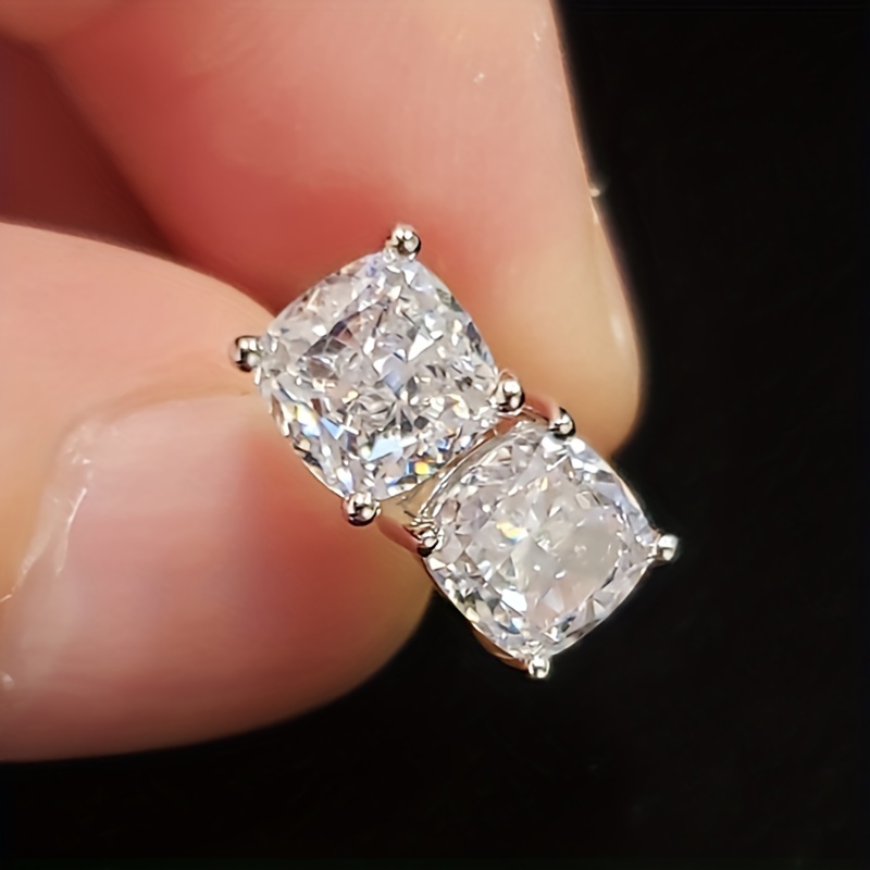 Inlaid square shiny Zirconia stud earrings, silver plating, simple earrings.