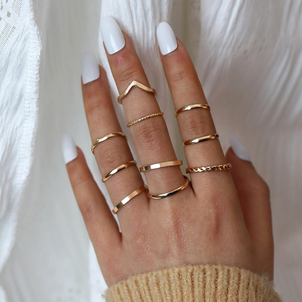 ins wind joint ring 10-piece set of simple wind element ring twist sequined ring for women