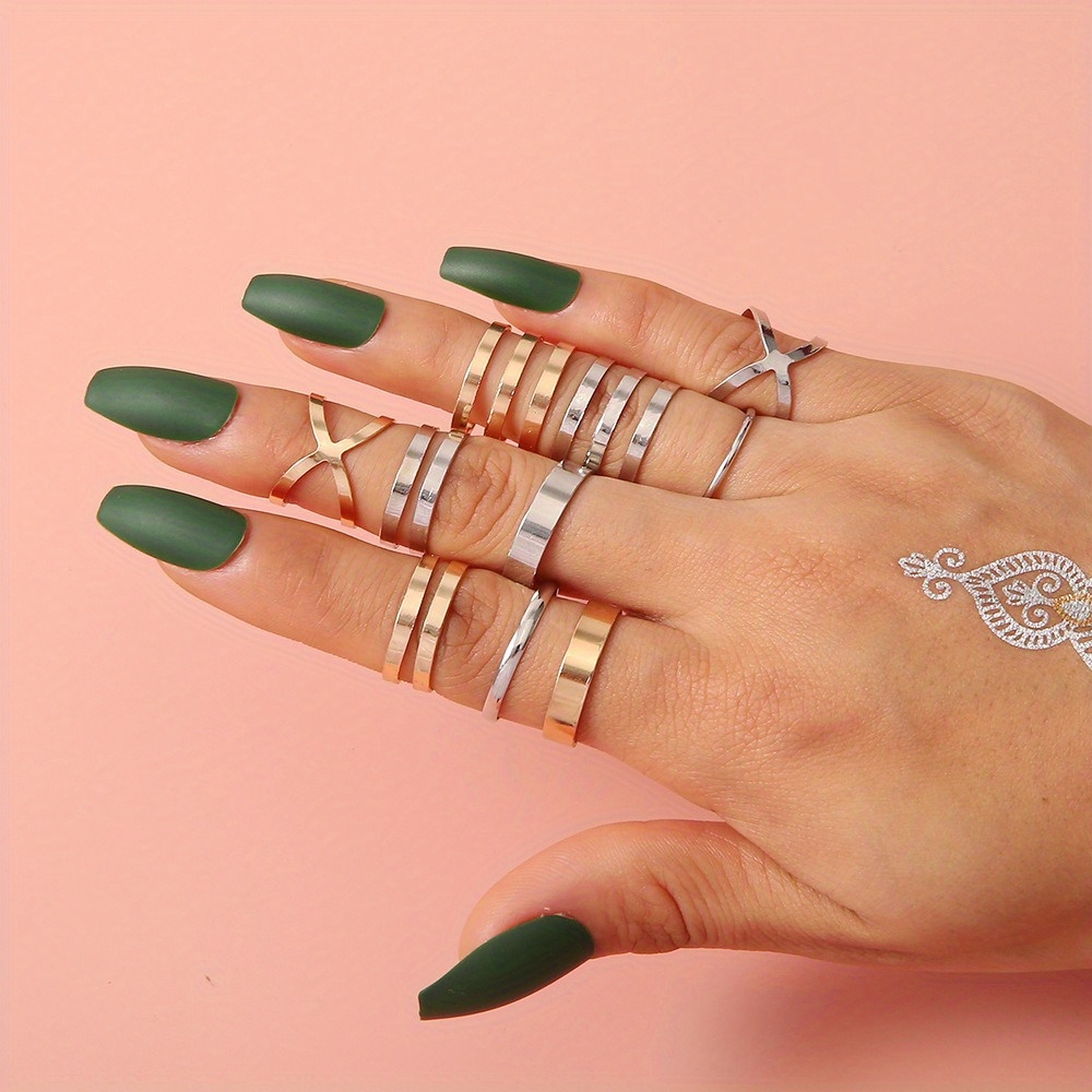 Internet celebrity minimalist metal geometric two-tone gold white cross ring female