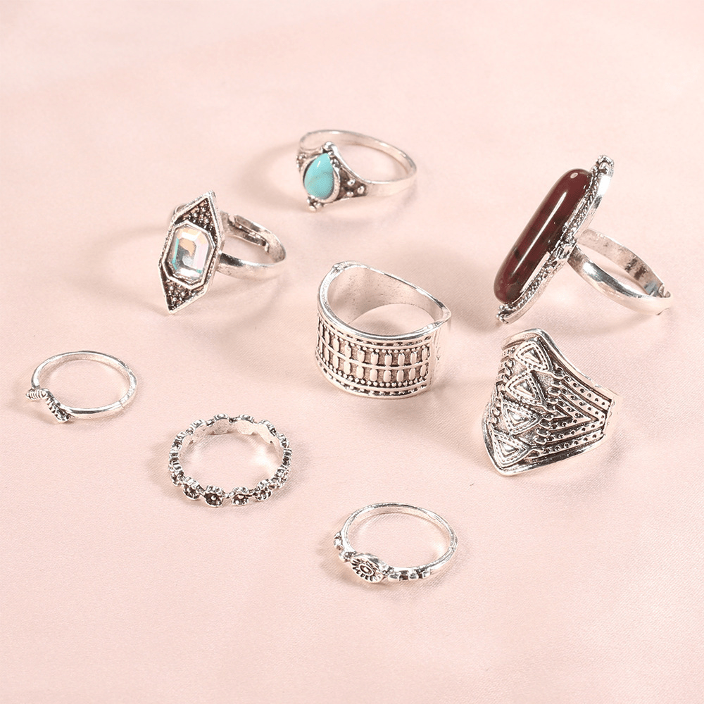 Joint Ring Set, Retro Ethnic Style Exaggerated Gemstone Turquoise Combination Ring Set.