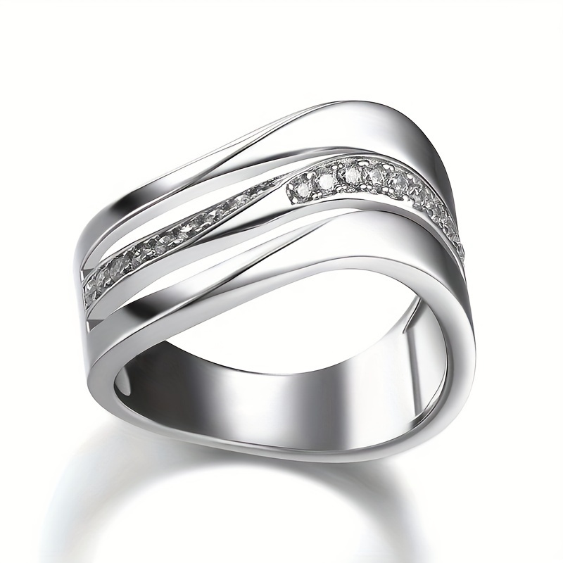 Ladies Bride Engagement Wedding Jewelry Silver Plated Band Ring
