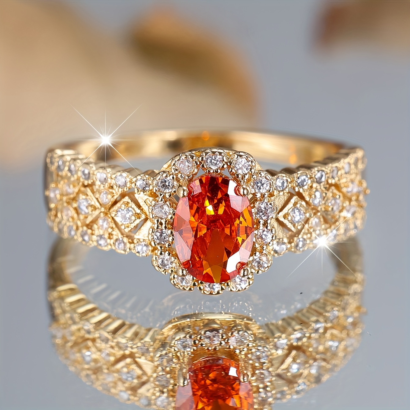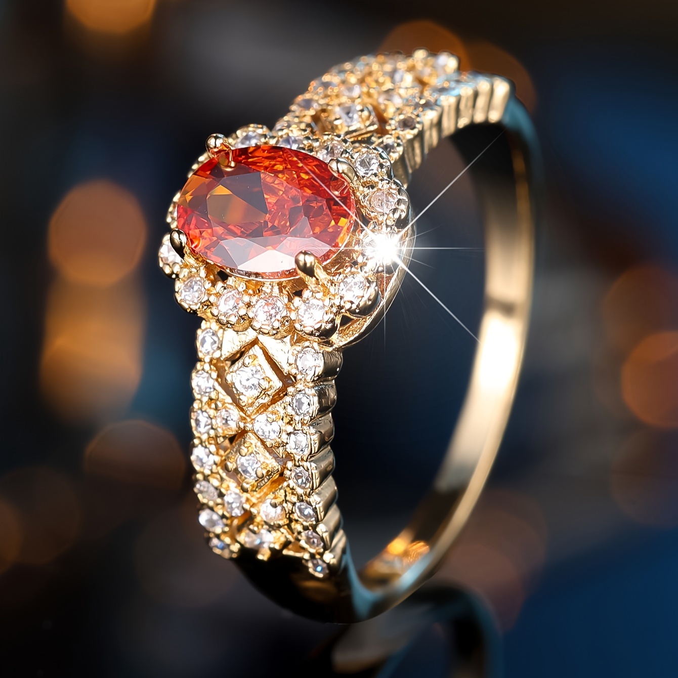 Ladies Elegant Bohemian Engagement Ring, Red Oval Gemstone with Synthetic Cubic Zirconia, Copper Ring, Luxury Wedding & Banquet Jewelry, All Season Accessories