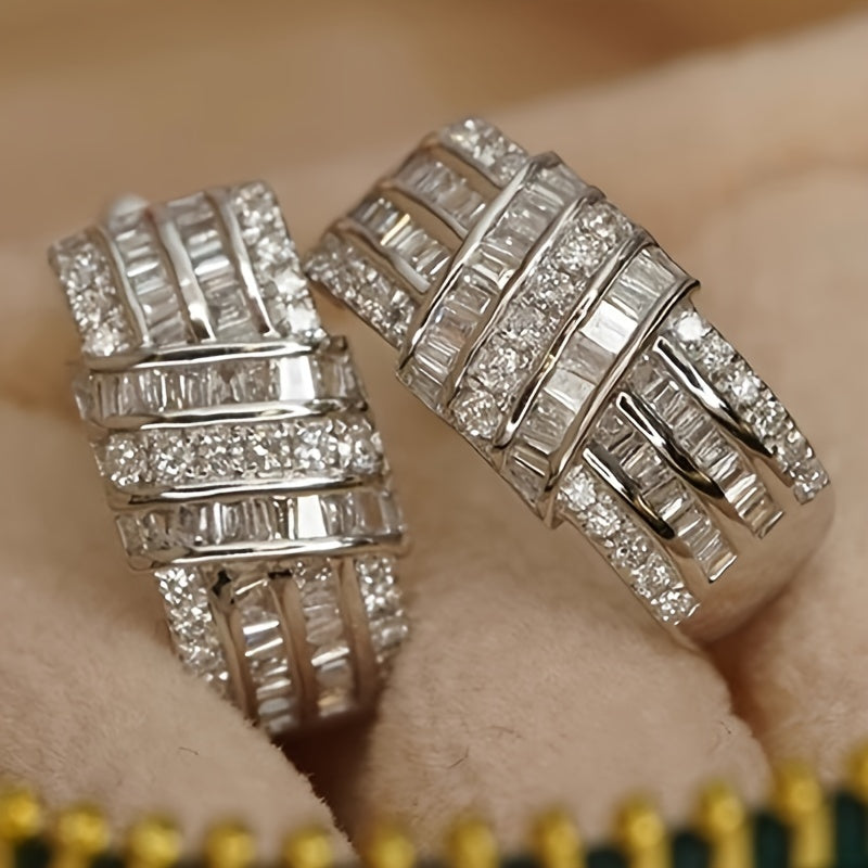 Ladies Elegant Copper Ring Earrings - Synthetic Cubic Zirconia, Shiny Style, Nickel Free, Everyday & Wedding Occasions, April Birthstones, All Season Accessories