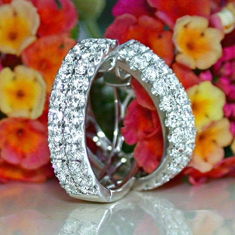 Ladies' Elegant Double Row Zirconia Round Earrings - Nickel-Free Copper, Perfect for Casual Attire and Parties