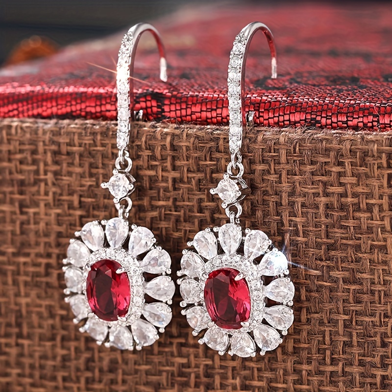 Ladies Elegant Luxury Flower Drop Earrings, April Birthstone, Synthetic Cubic Zirconia Copper, Nickel Free Ear Hooks, Perfect for Daily Wear and Banquets, All Season Accessories