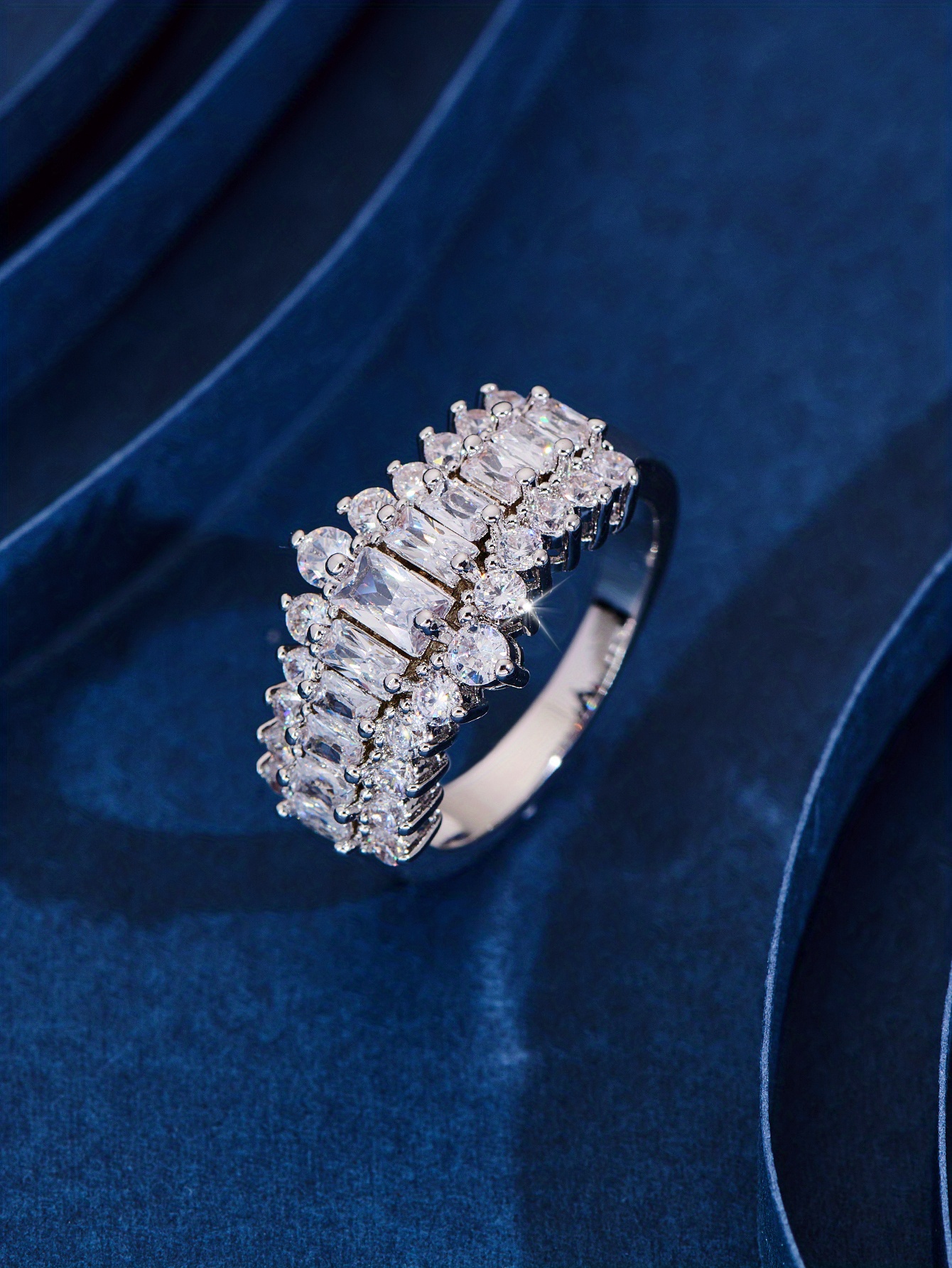 Ladies Elegant Retro White Trapezoidal Cubic Zirconia Wedding Ring - Perfect for Casual Decoration